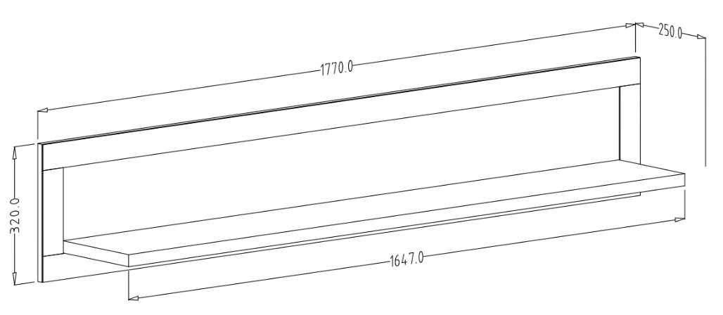 Sa širinom od 177 cm i dubinom od 25 cm polica nudi dovoljno prostora za raspored predmeta bez osjećaja pretrpanosti. Visina od 32 cm omogućuje da se jedinica diskretno uključi u kompoziciju zidnog namještaja ili da djeluje kao samostalan dekorativni element. Zbog svoje duljine pogodna je i za postavljanje iznad TV regala ili blagovaonske komode, gdje može služiti kao dodatna površina za izlaganje ukrasnih dodataka.