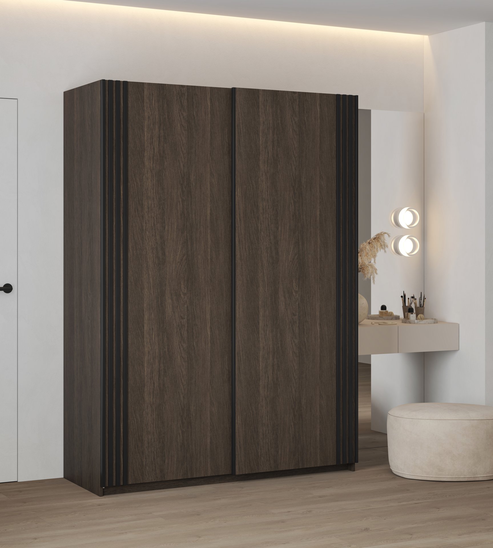 Ormar je idealan izbor za one koji traže ravnotežu između estetike, funkcionalnosti i kvalitete izrade. Drvena struktura hrasta dunin donosi osjećaj topline, dok crna mat površina dodaje dašak suvremenosti. Zbog jednostavnog oblika i promišljenog rasporeda unutrašnjosti Niva 150 lijepo se uklapa u svaki dom i omogućuje učinkovito pohranjivanje bez kompromisa u izgledu.