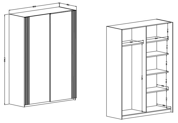 Ormar mjeri 150x61x210 cm, što znači da nudi dovoljno prostora za pohranu odjeće, dodataka i sezonskih komada garderobe. S visinom od 210 cm iskorištava prostor do stropa, dok dubina od 61 cm omogućuje udobno vješanje duže odjeće poput kaputa ili haljina. Širina od 150 cm osigurava optimalan omjer između prostranosti i kompaktnosti, pa se ormar uklapa i u manje spavaće sobe ili predsoblja.