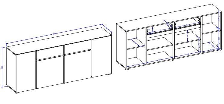 Široka komoda Asymetric idealan je odabir za one koji traže kombinaciju modernog dizajna i praktične funkcionalnosti. Zbog svoje prostranosti odlično se uklapa u dnevne boravke, blagovaonice ili hodnike, gdje služi kao prostor za pohranu posuđa, tekstila, dokumenata ili osobnih predmeta. Njena univerzalna boja omogućuje jednostavno kombiniranje s drugim komadima namještaja u svijetlim ili tamnim nijansama drveta.