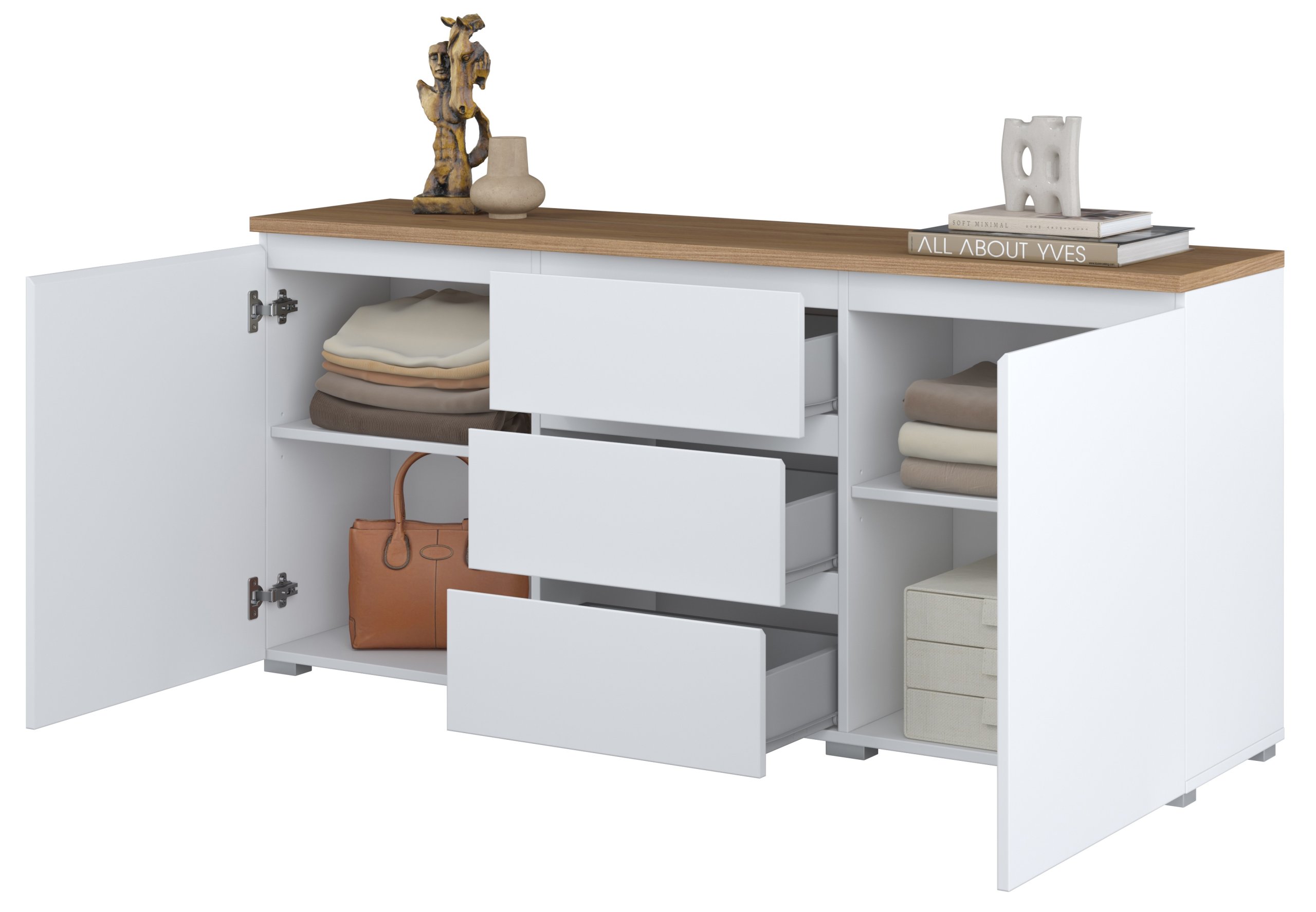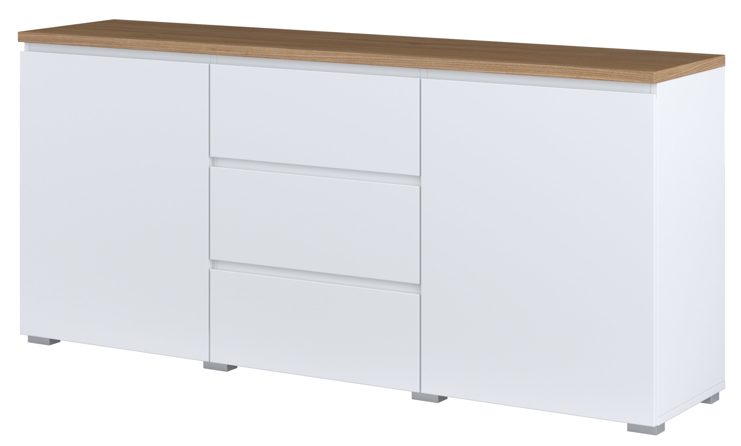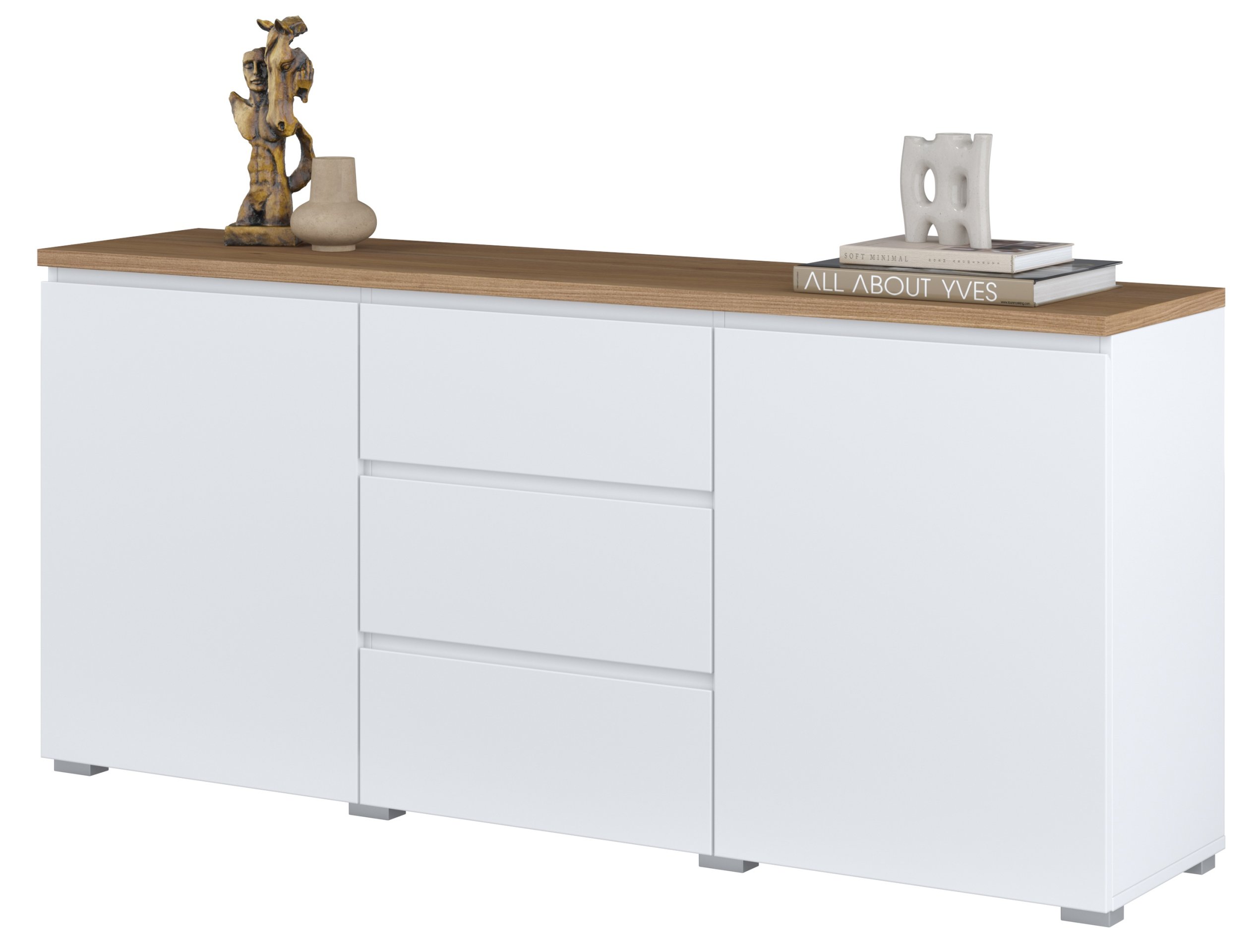 Ova komoda u kombinaciji bijele i prirodne boje hrasta mauvella izvrstan je primjer suvremenog namještaja koji spaja funkcionalnost i estetiku u jednom komadu. S dimenzijama 150x35x68 cm nudi dovoljno prostora za pohranu, a zbog uskog oblika ne zauzima previše mjesta, što je čini idealnom za manje prostore, hodnike ili dnevne sobe. Izrađena je u tvornici Helvetia meble u Poljskoj, gdje je kvaliteta izrade podržana dugogodišnjim iskustvom u proizvodnji modernog namještaja.