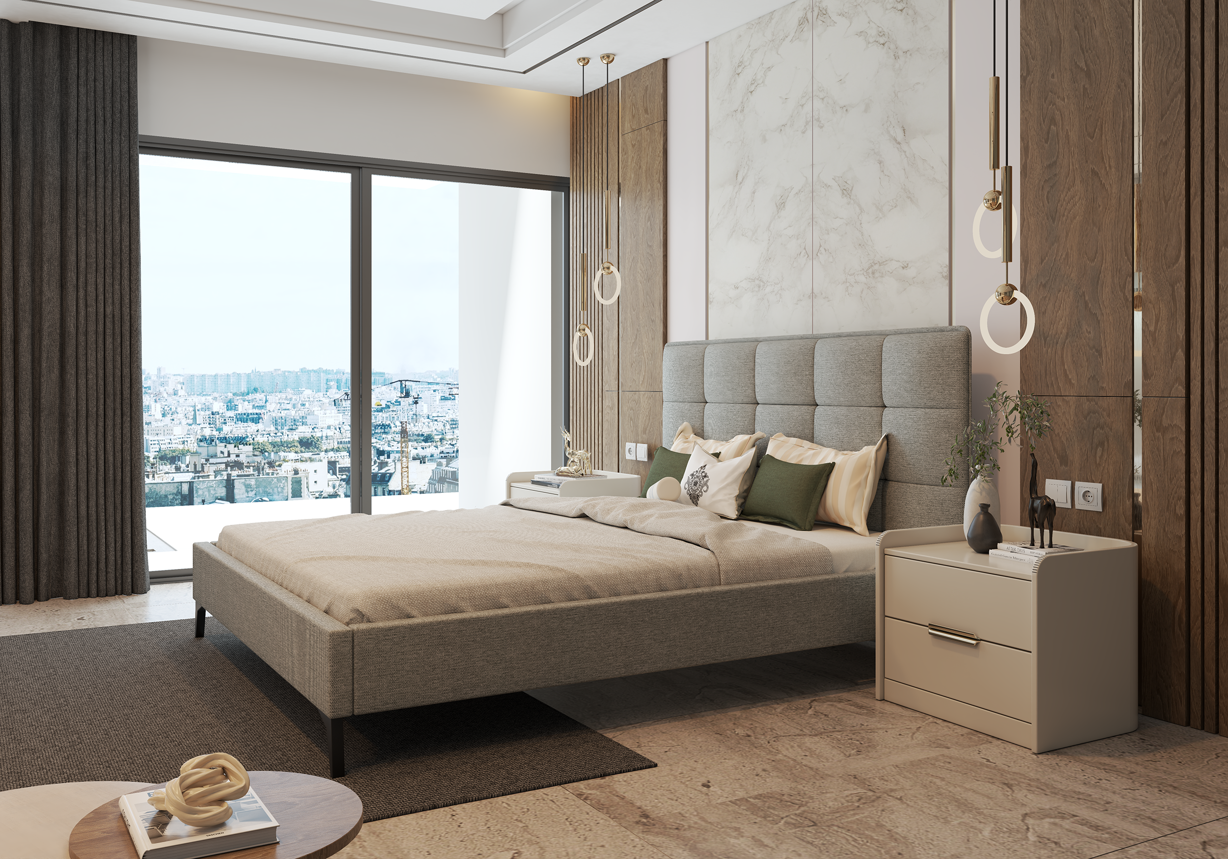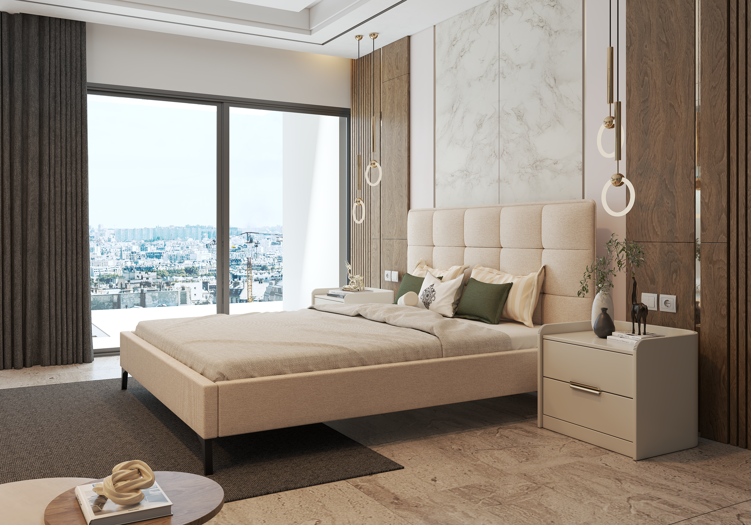 Krevet Sisi izvrsna je opcija za one koji žele stvoriti ugodnu i elegantnu spavaću sobu. Zbog svoje neutralne boje lijepo se uklapa i s prirodnim drvenim tonovima i sa svijetlim ili tamnim dekorima. Tapecirano uzglavlje u mekoj tkanini dodaje osjećaj luksuza, ali istovremeno zadržava minimalističku liniju karakterističnu za moderne interijere. Krevet se odlično uklapa i u prostrane spavaće sobe i u manje prostorije, gdje je važna vizualna lakoća namještaja.