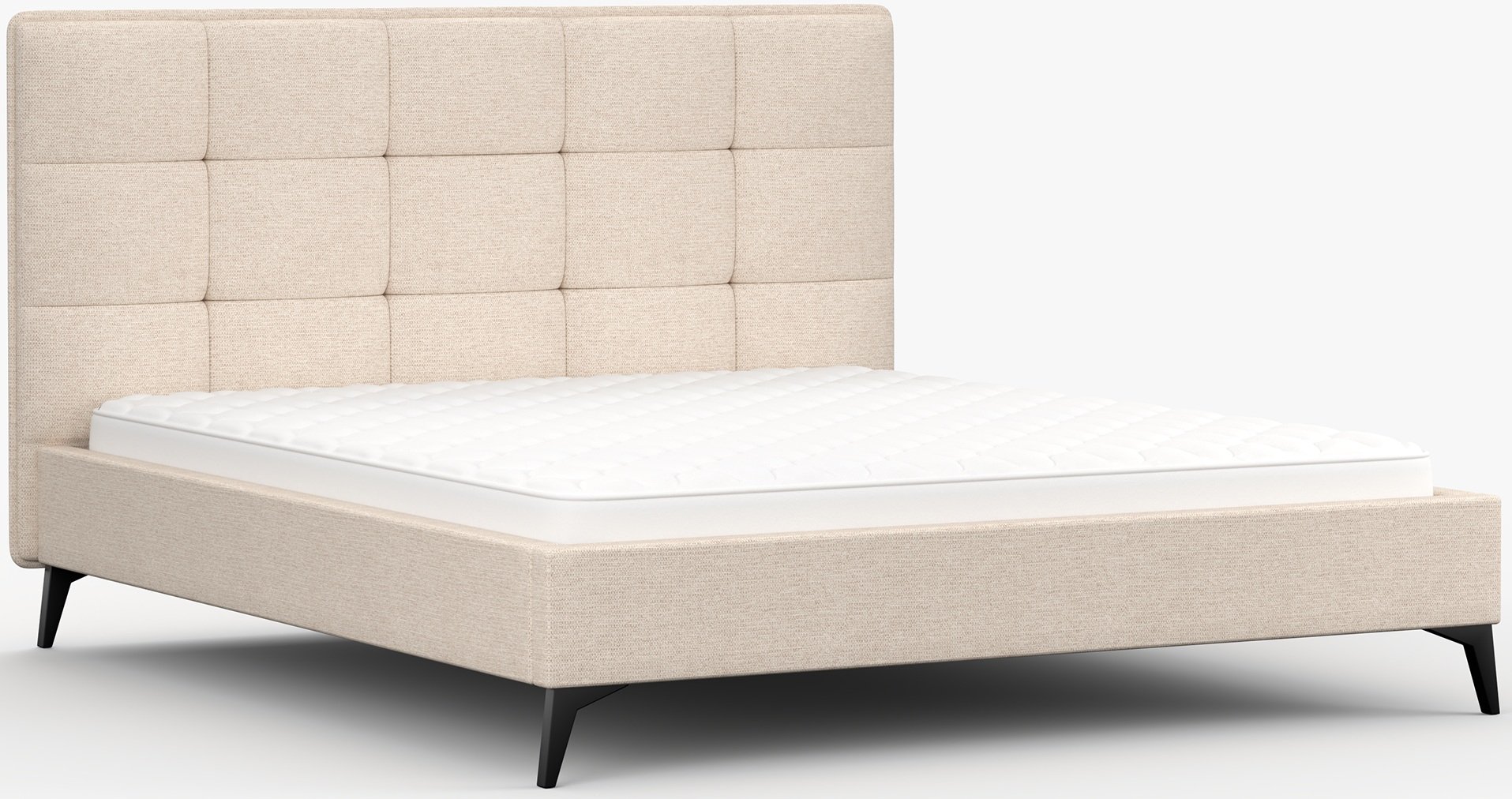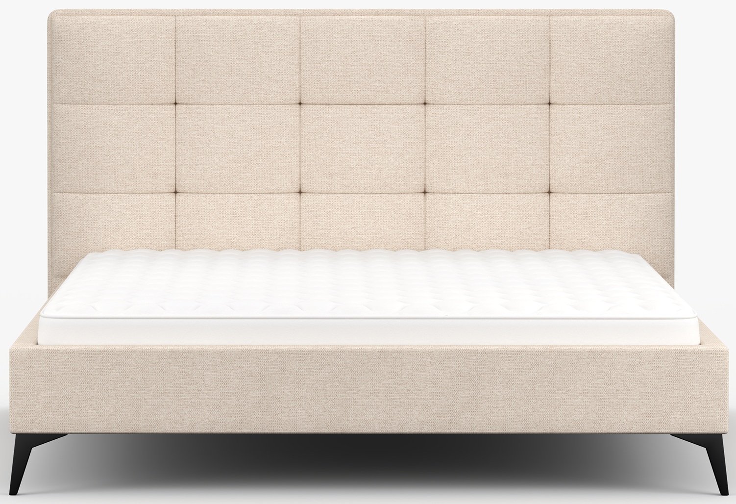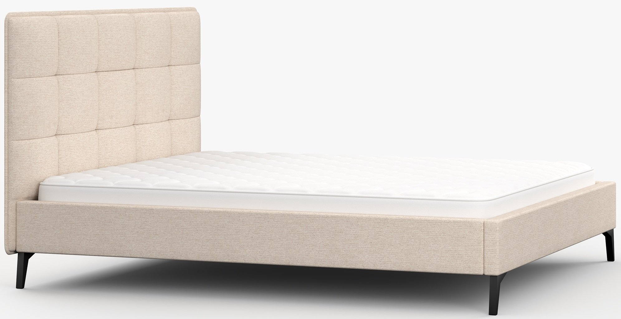 Metalne noge u crnoj boji, visoke 13 cm, daju krevetu vizualnu lakoću te omogućuju jednostavno čišćenje poda ispod njega. Cijela konstrukcija mjeri 183x218x110 cm, što pruža dovoljno prostora za standardne madrace dimenzija 160x200 cm. Krevet se prodaje bez madraca, što omogućuje svakom korisniku da odabere model koji najbolje odgovara njegovim navikama spavanja i preferencijama tvrdoće.