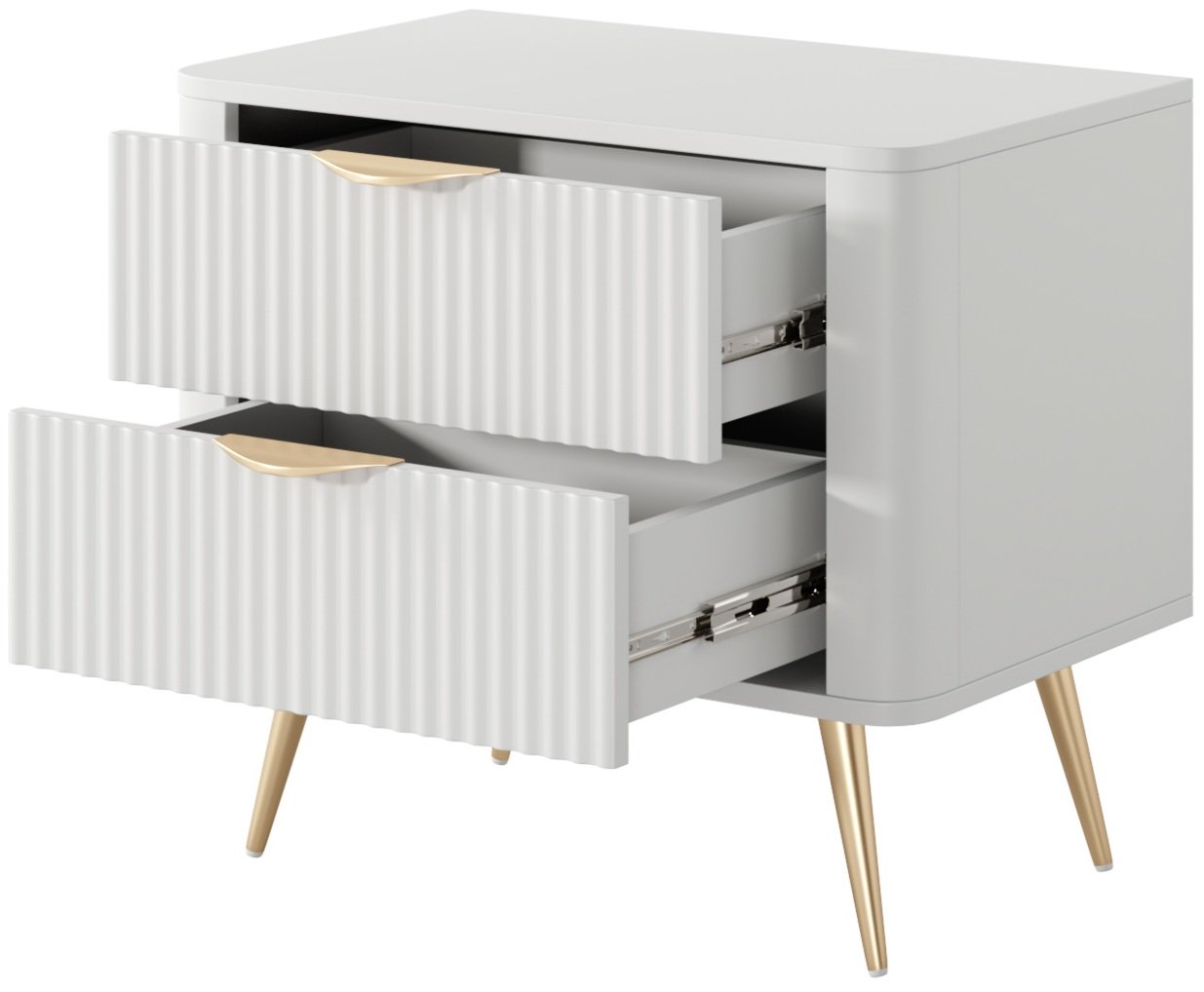 Noćni ormarić Lante G – bijeli ponosi se dimenzijama 63,2 x 38 x 55,3 cm, što znači da pruža dovoljno prostora za pohranu, a istovremeno ne zauzima previše mjesta u spavaćoj sobi. Zahvaljujući promišljenoj visini savršeno pristaje uz većinu kreveta, pa su vaša knjiga, naočale ili čaša vode uvijek pri ruci. S dvije praktične ladice koje se otvaraju s mekanim i tihim zatvaranjem, uživat ćete u udobnosti bez ometajuće buke, posebno u večernjim satima.