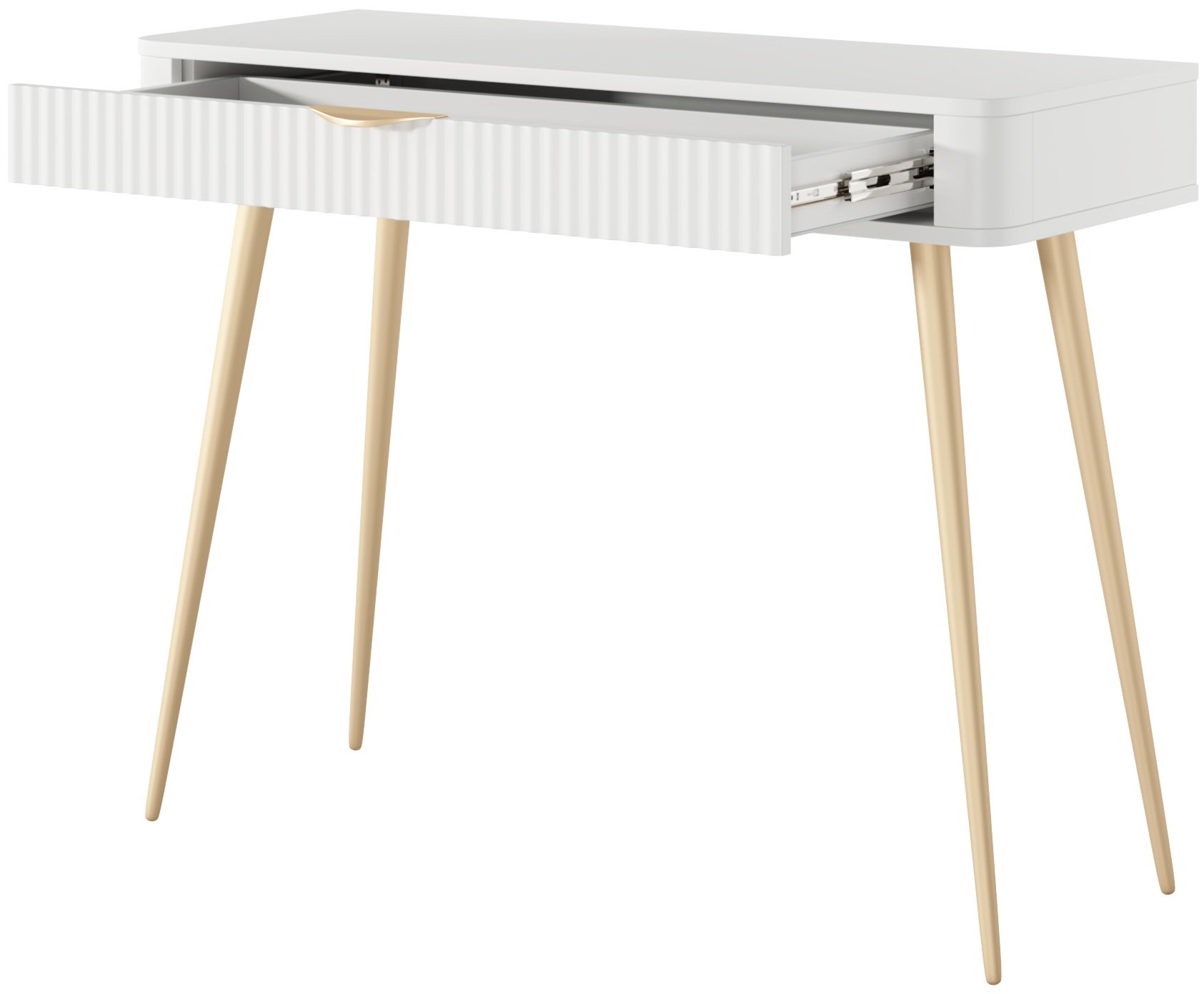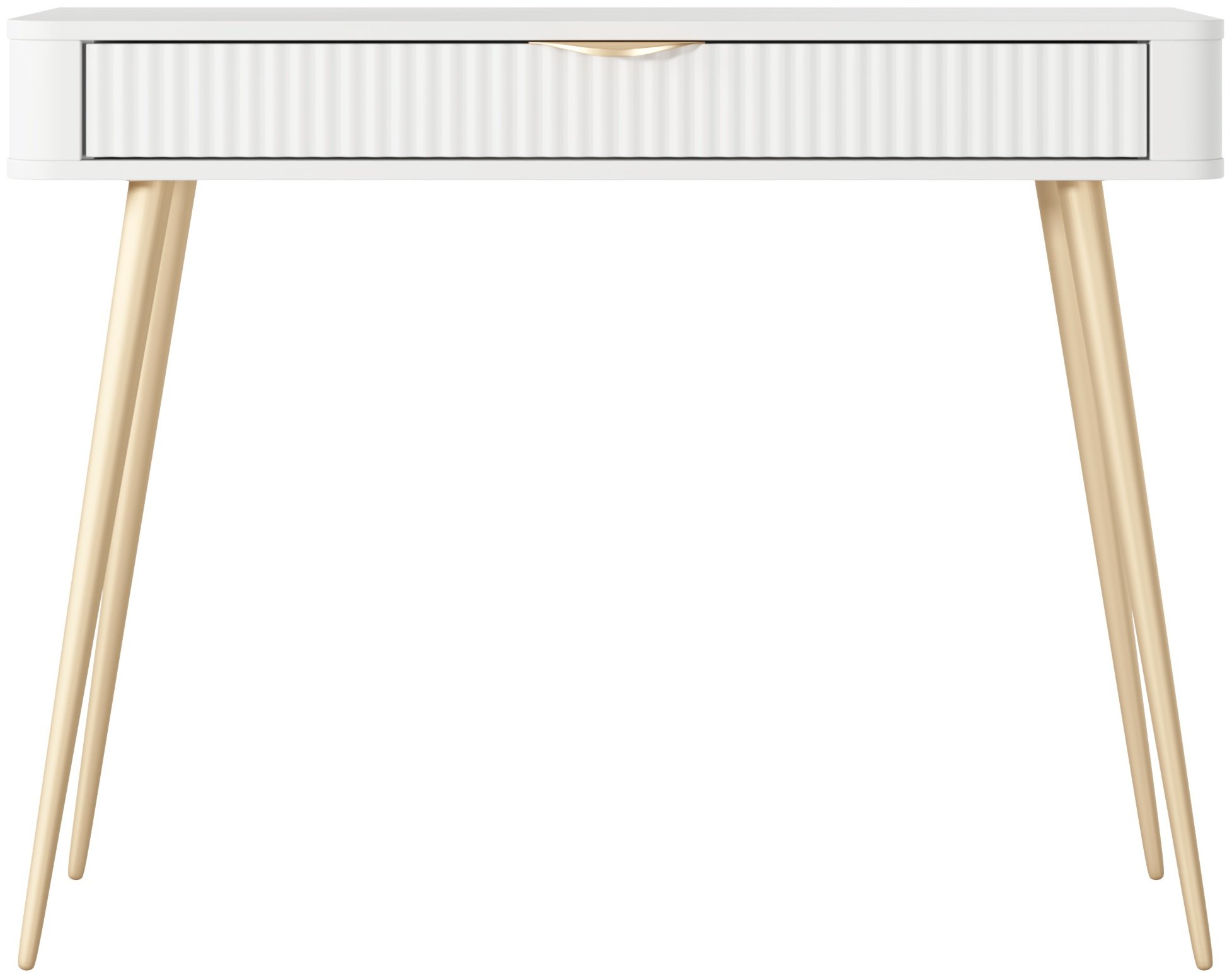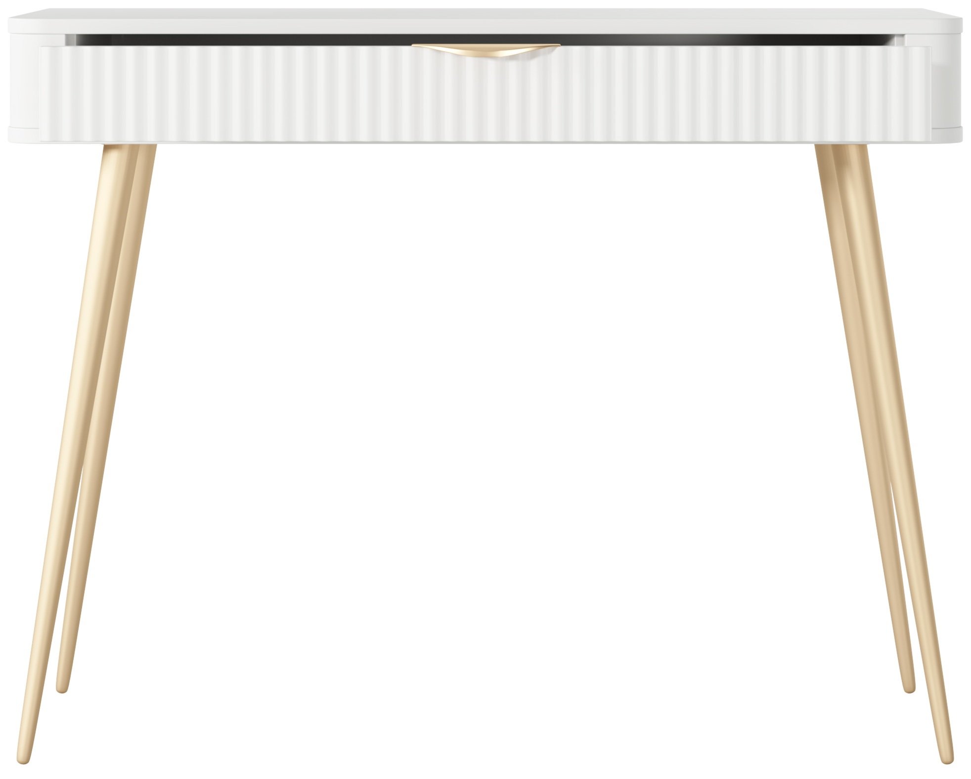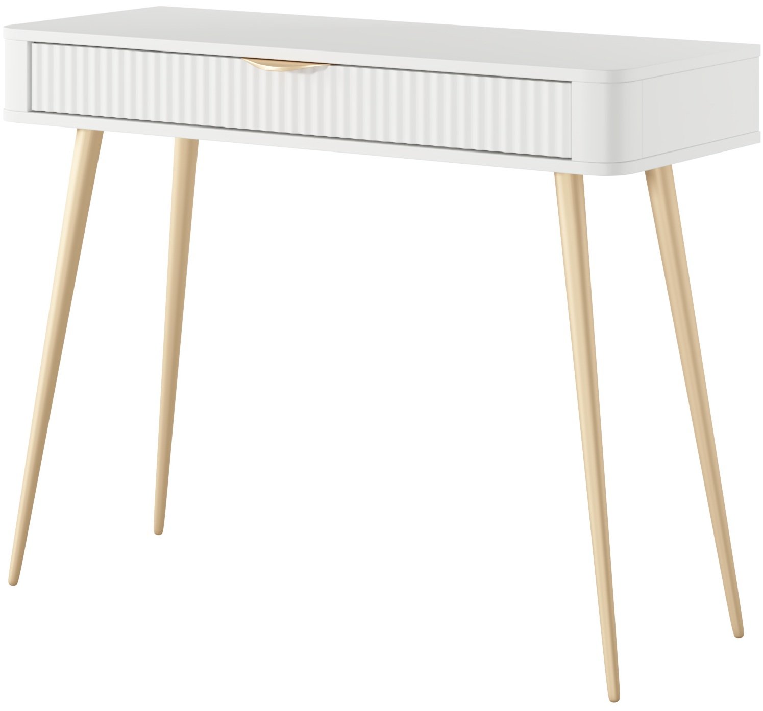 Čista bijela boja u kombinaciji s nježnim linijama omogućuje da se stolić lako uklopi u različite stilove interijera – od klasičnog do modernog. Bijela površina stvara osjećaj svjetlosti i prostranosti, pa je posebno pogodna za manje prostore u kojima želite dočarati više prozračnosti. Takva neutralnost boje omogućuje jednostavno kombiniranje s ostalim komadima namještaja, dekoracijom i ogledalima.