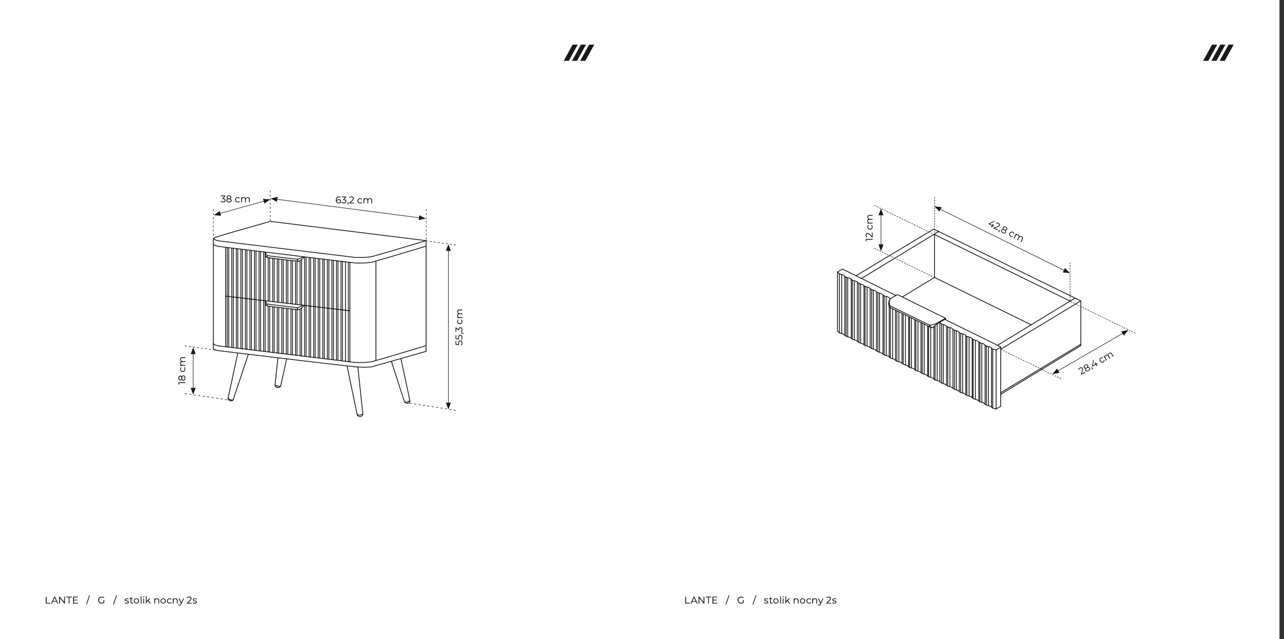 Noćni ormarić Lante 2S dizajniran je tako da pruža optimalnu funkcionalnost u svakodnevnoj uporabi. Ladice se otvaraju glatko, što omogućuje brz i tih pristup sadržaju. Zbog svoje visine i širine ormarić se može koristiti i kao pomoćni stolić u dnevnoj sobi ili predsoblju. Njegov univerzalni oblik omogućuje da se bez poteškoća uklopi u različite interijere – od modernog skandinavskog do tradicionalnijeg ambijenta.