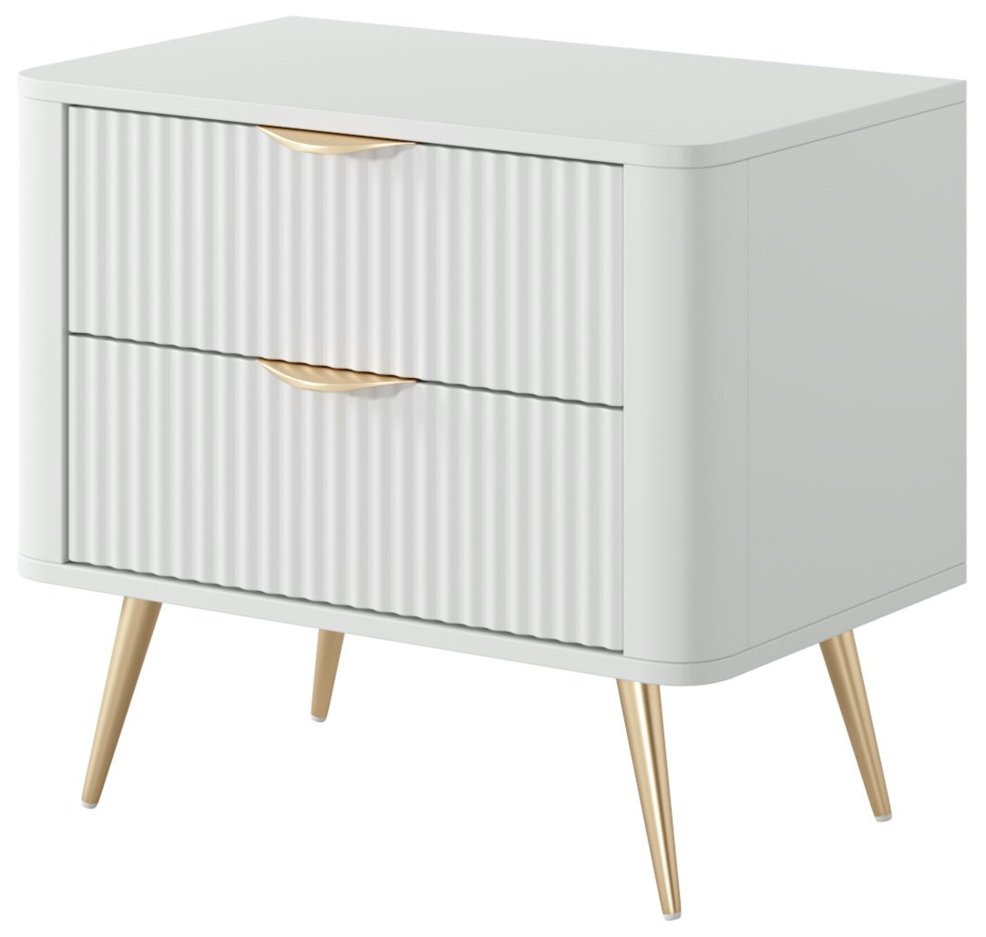 Noćni ormarić Lante 2S – Laski meble više je od komada namještaja; to je element koji stvara harmoniju u prostoru. Bijela boja vizualno povećava prostor, a zlatni detalji mu daju toplinu i karakter. Njegov minimalistički dizajn omogućuje da dođe do izražaja u svakom ambijentu, a da ne nadvlada druge elemente namještaja. Moderna konstrukcija i promišljeno odabrani materijali osiguravaju da će ormarić zadržati svoj izgled i funkcionalnost i nakon višegodišnje uporabe.