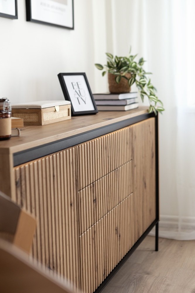 Bijela komoda nije samo funkcionalno rješenje već je i estetski dodatak vašem interijeru. Zahvaljujući čistim linijama i minimalističkom dizajnu, komoda se uklapa u različite stilove uređenja, od modernog do skandinavskog ili klasičnog. Moderan dizajn komode vizualno osvježava prostor, unosi u njega ugodnu atmosferu i lakoću, a rebrasti uzorak na frontama prati posljednje trendove u uređenju interijera. Idealna je za postavljenje u različite dijelove doma poput spavaće sobe, dnevnog boravka ili predsoblja.