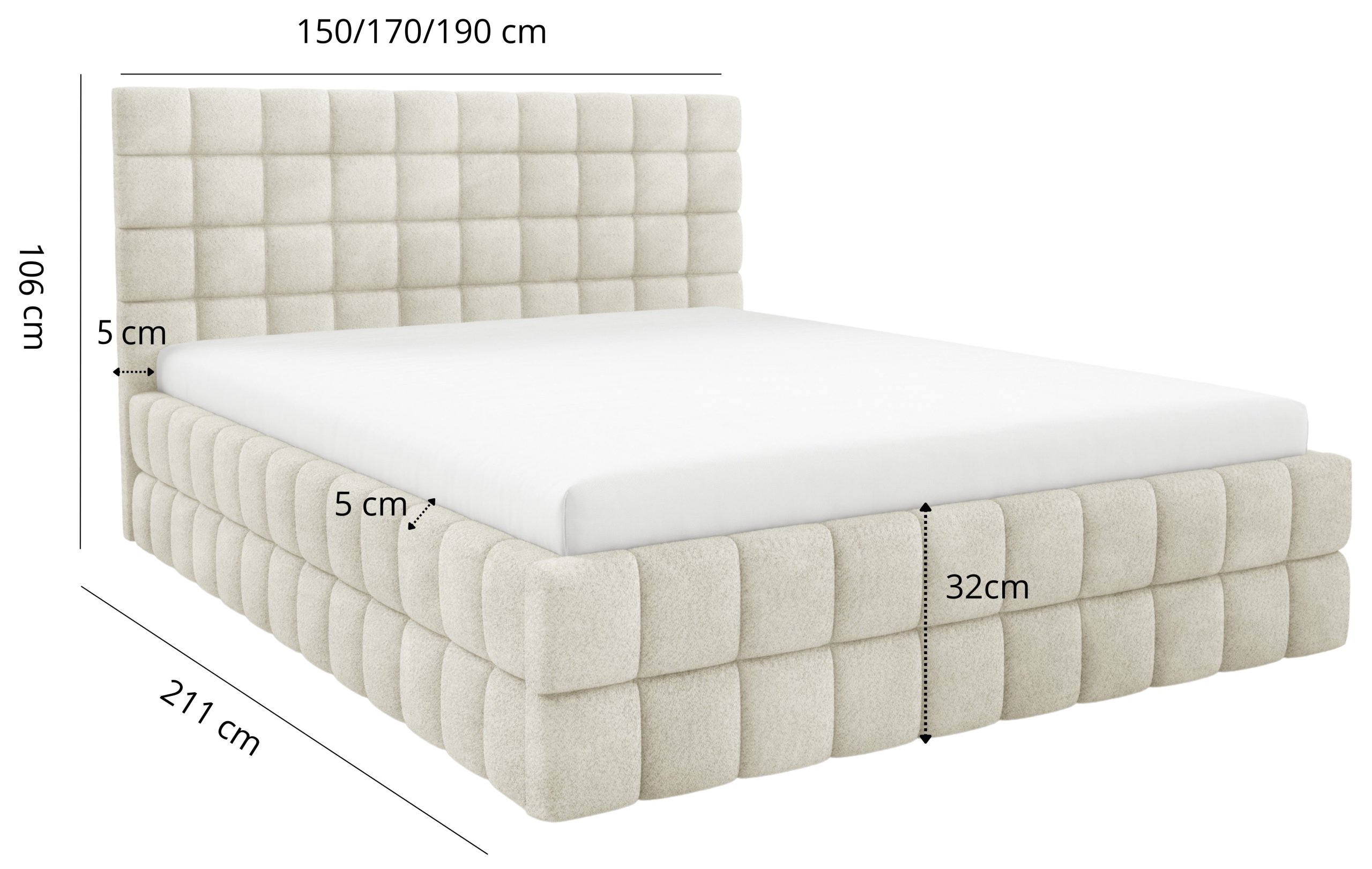 Okvir kreveta izrađen je od metalnog profila širine 34 mm, što osigurava čvrstoću i dug vijek trajanja. Tapecirana površina dodaje mekoću i toplinu, pa se krevet lijepo uklapa u različite unutarnje stilove – od modernog do klasičnog. Dostupan je u raznim bojama i tkaninama, među ostalim i u nijansi Doha 02, koja svojom neutralnom i elegantnom bojom omogućuje jednostavno kombiniranje s ostalim namještajem u spavaćoj sobi.