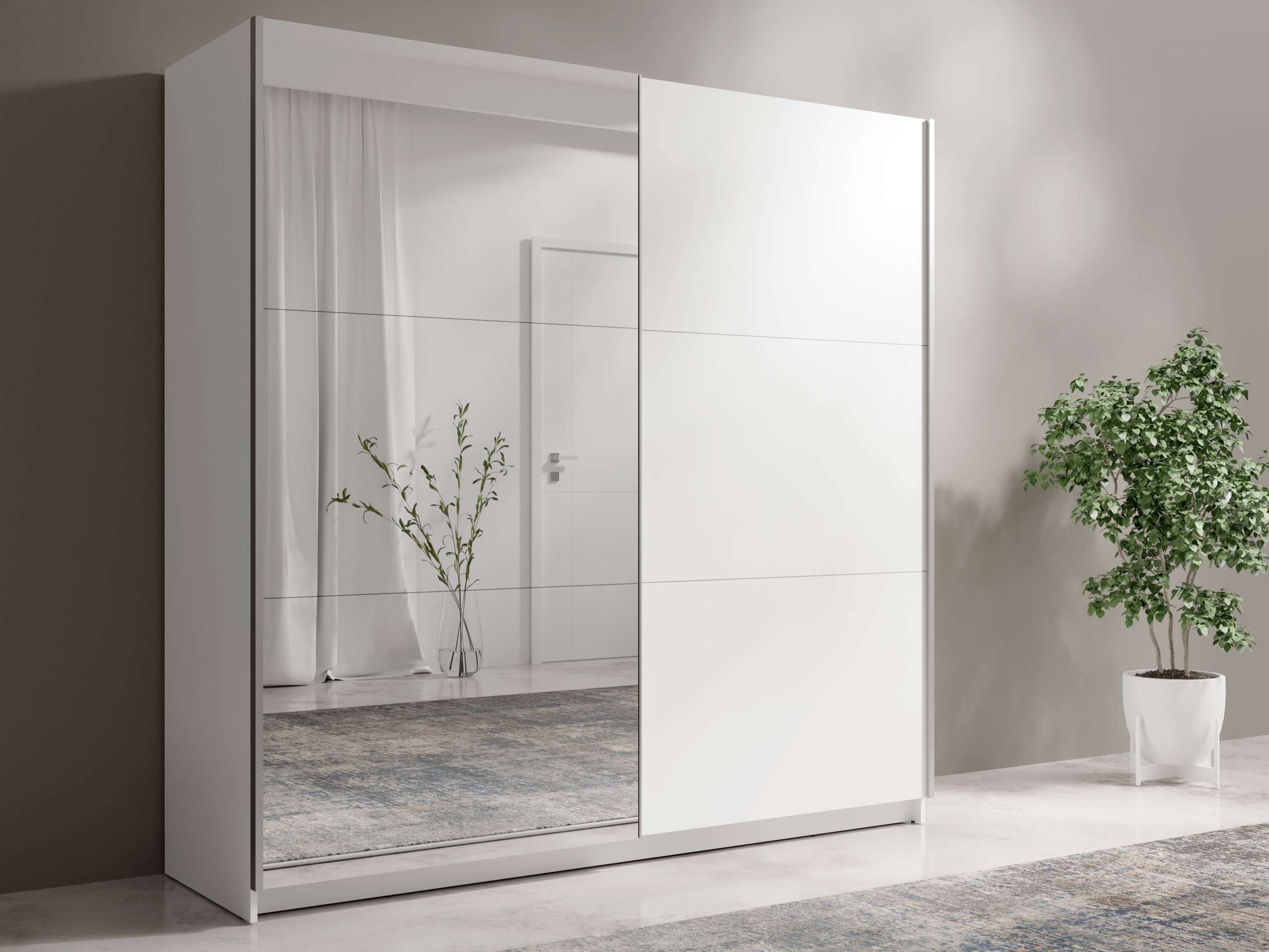 Unesite eleganciju i praktičnost u svoj dom s garderobnim ormarom s kliznim vratima i ogledalom Arsala III 11. Ovaj izniman ormar spaja suvremeni dizajn s funkcionalnošću koja će poboljšati vašu spavaću sobu ili hodnik. Svojom bijelom mat bojom lako se uklapa u različite stilove unutarnjeg uređenja, od minimalističkog do klasičnog.