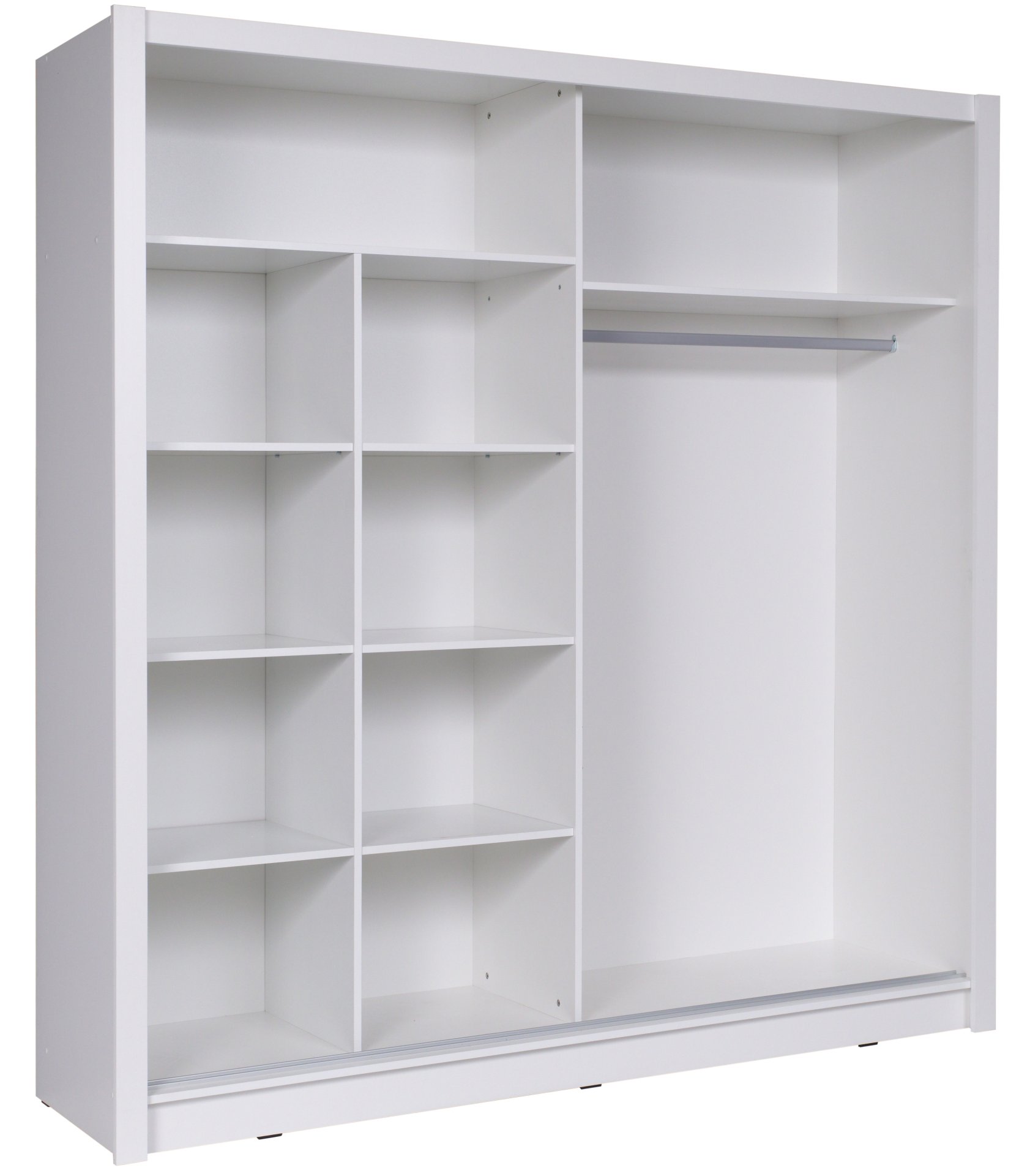 S dimenzijama 205x62x215 cm, garderobni ormar Baku 12 nudi obilje prostora za organizaciju odjeće i dodataka. Njegova prostrana unutrašnjost osmišljena je tako da omogućuje optimalno korištenje prostora s više polica i vješalica. Klizna vrata nisu samo elegantna, već i praktično rješenje, jer omogućuju jednostavan pristup sadržaju ormara bez potrebe za dodatnim prostorom za otvaranje.