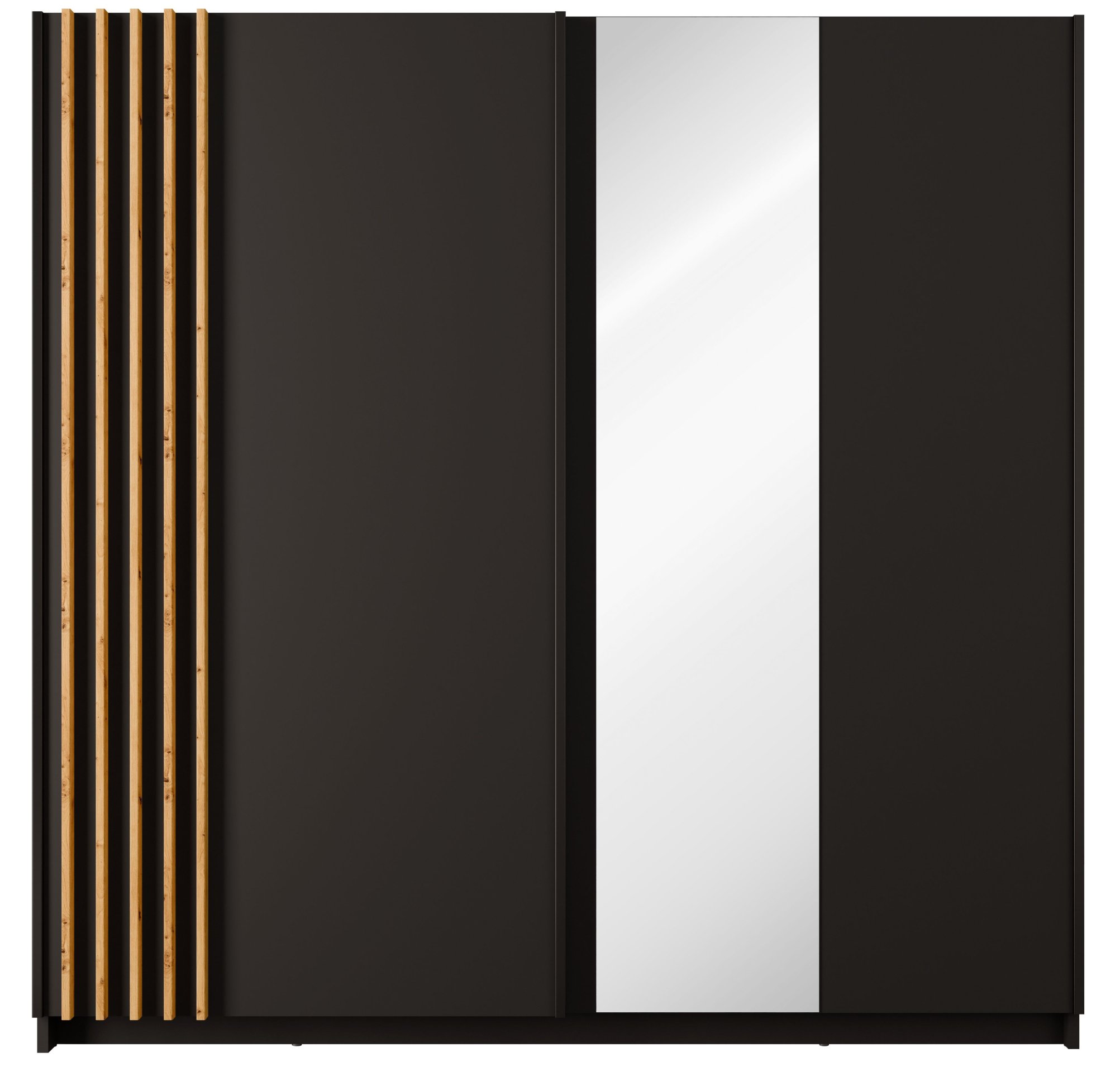 Otkrijte savršenstvo u dizajnu i funkcionalnosti s garderobnim ormarom Bayadero 12 III. Ovaj prekrasan ormar s kliznim vratima u elegantnoj crnoj boji dodat će vašem domu dašak suvremene elegancije, a istovremeno nudi praktična rješenja za pohranu vaše odjeće i dodataka.
