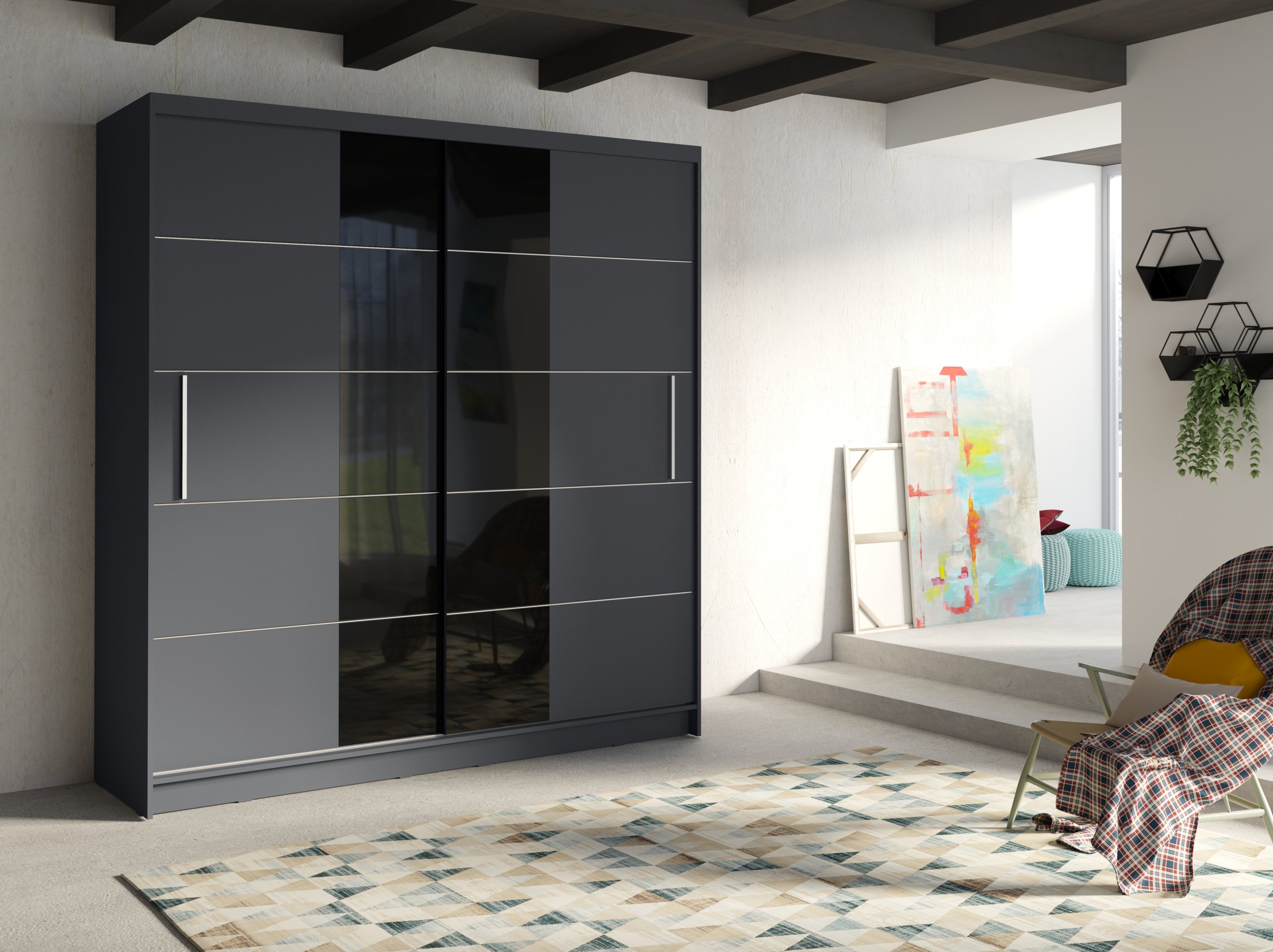 Ormar Brno XII izrađen je od izdržljive laminirane ploče, koja osigurava trajnost i dugotrajnu upotrebu. Laminirana površina otporna je na ogrebotine i ostala mehanička oštećenja, što znači da će vaš ormar zadržati svoj besprijekoran izgled dugi niz godina. Boja grafit dodaje dašak modernosti i lako se prilagođava različitim stilovima unutarnjeg uređenja, bilo u spavaćoj sobi, garderobi ili predsoblju.