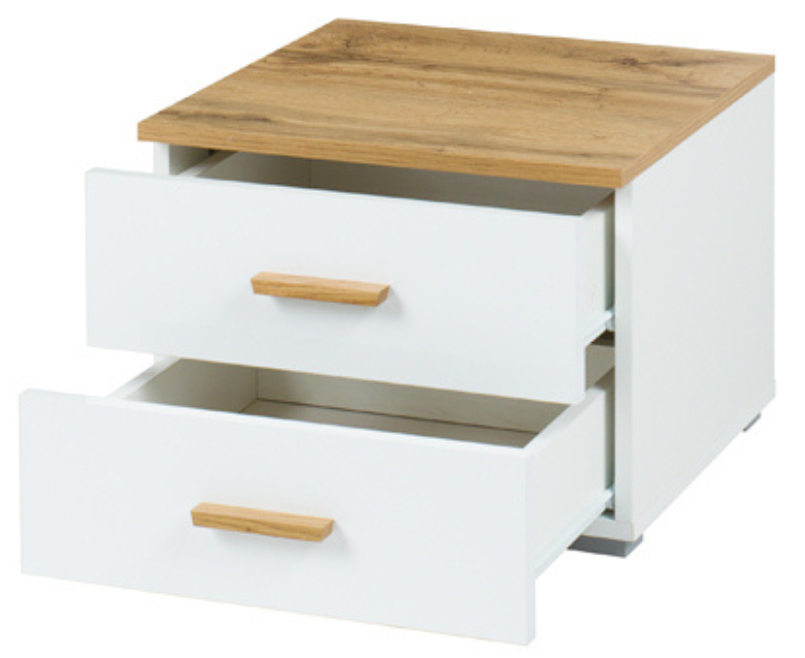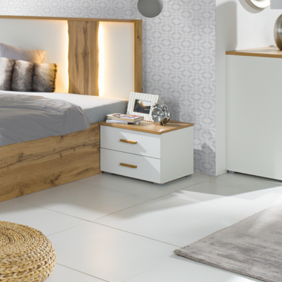 Kombinacija prirodnog izgleda drveta i čiste bijele boje savršeno se uklapa u moderne trendove unutarnjeg uređenja koji spajaju minimalizam s prirodnim elementima. Ovim kompletom noćnih ormarića svojoj ćete spavaćoj sobi dodati dašak elegancije i topline, a istovremeno ćete osigurati praktičnu funkcionalnost koja vam je potrebna svakoga dana.