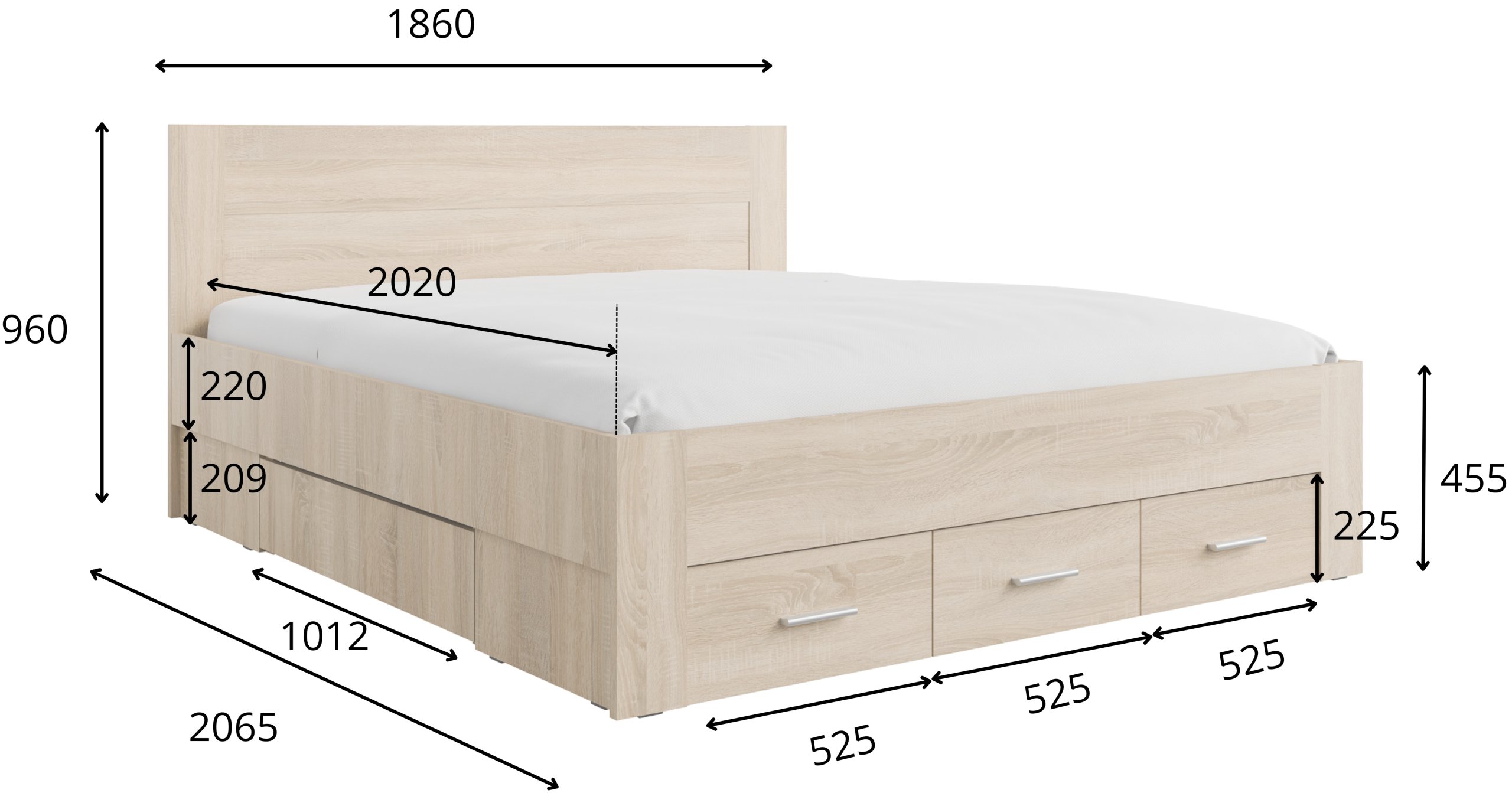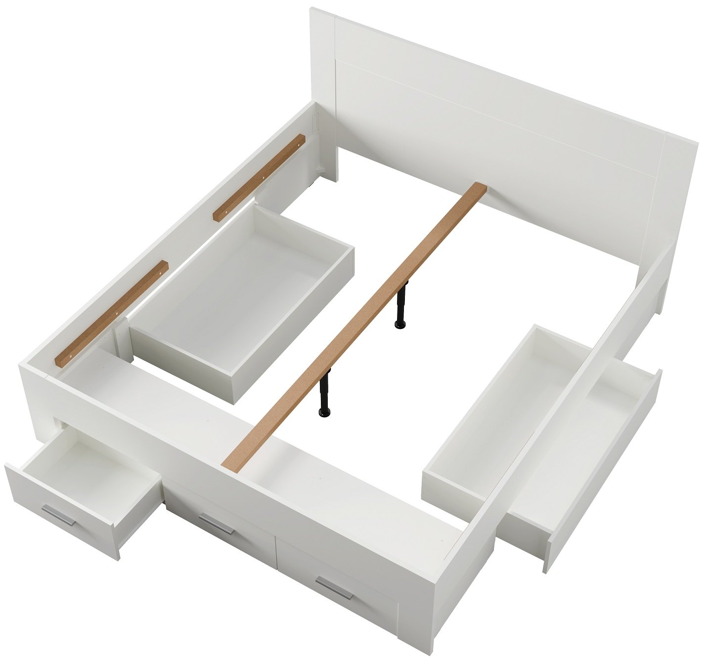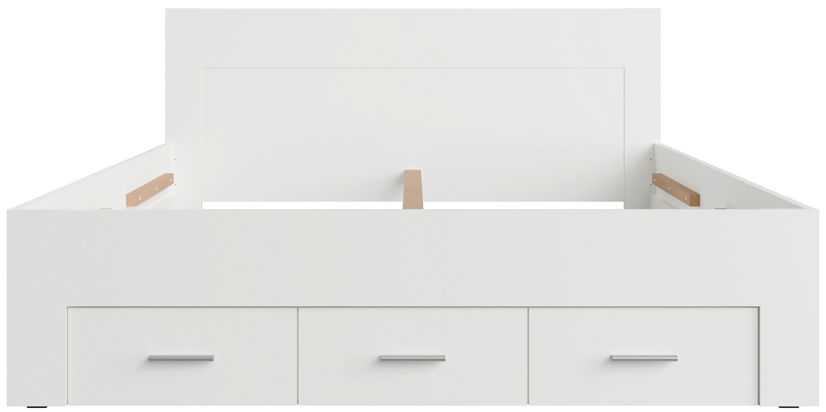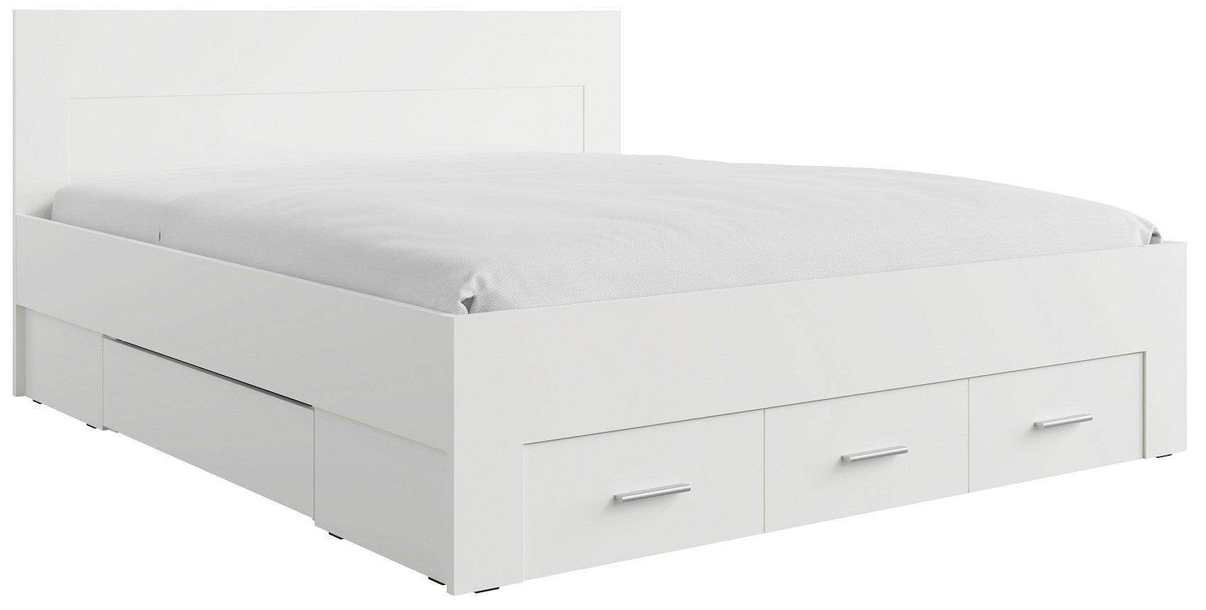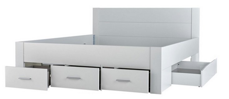 Krevet je dizajniran tako da omogućuje jednostavnu montažu. Svi elementi su precizno obrađeni, a rubovi zaštićeni, što osigurava sigurnu uporabu. Zbog kompaktne strukture prikladan je i za manje i za veće spavaće sobe. Bijela boja vizualno povećava prostor i stvara osjećaj svježine, dok ladice pomažu održavati red i urednost.