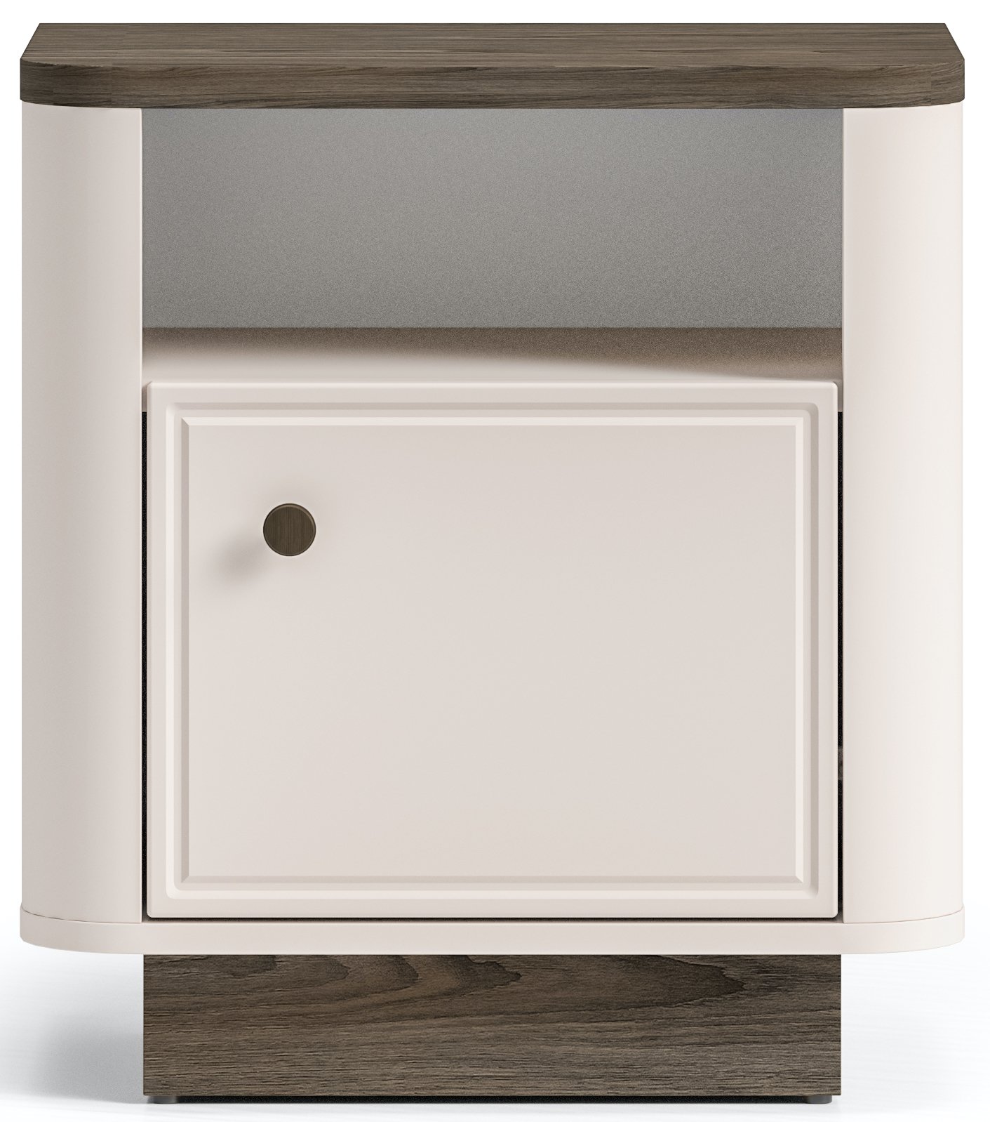 Profinjena kombinacija tamnog hrasta i svjetlijih tonova kašmira te bijele stvara osjećaj ravnoteže, što omogućuje da se komad nenametljivo stopi s okolinom. To je idealno rješenje za one koji traže jednostavan, ali elegantan namještaj koji ne dominira prostorom, već ga nadopunjuje.