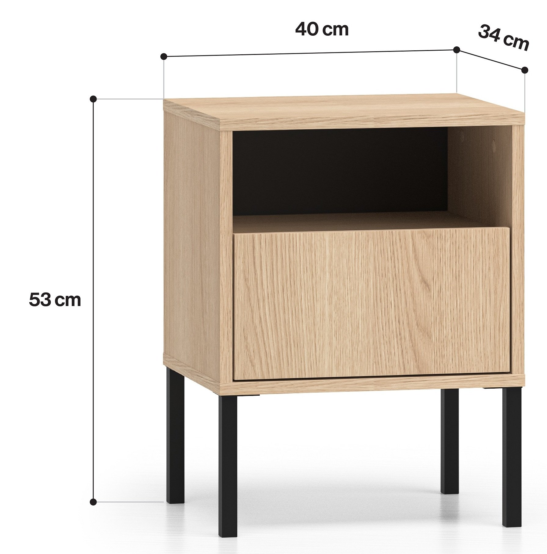 Noćni ormarić Barnee 05 u boji hrasta lindberg spaja moderan izgled, kvalitetne materijale i promišljenu izradu, karakterističnu za poljskog proizvođača ML Meble. Zbog uravnoteženih proporcija i čiste linije savršeno se uklapa u spavaće sobe s minimalističkom ili elegantnom estetikom. Njezin izgled prirodnog drva stvara osjećaj topline, dok metalni okvir donosi stabilnost i modernu industrijsku notu. S kompaktnim dimenzijama 40x34x53 cm nudi dovoljno prostora za pohranu pokraj kreveta, a da ne zauzima previše mjesta.