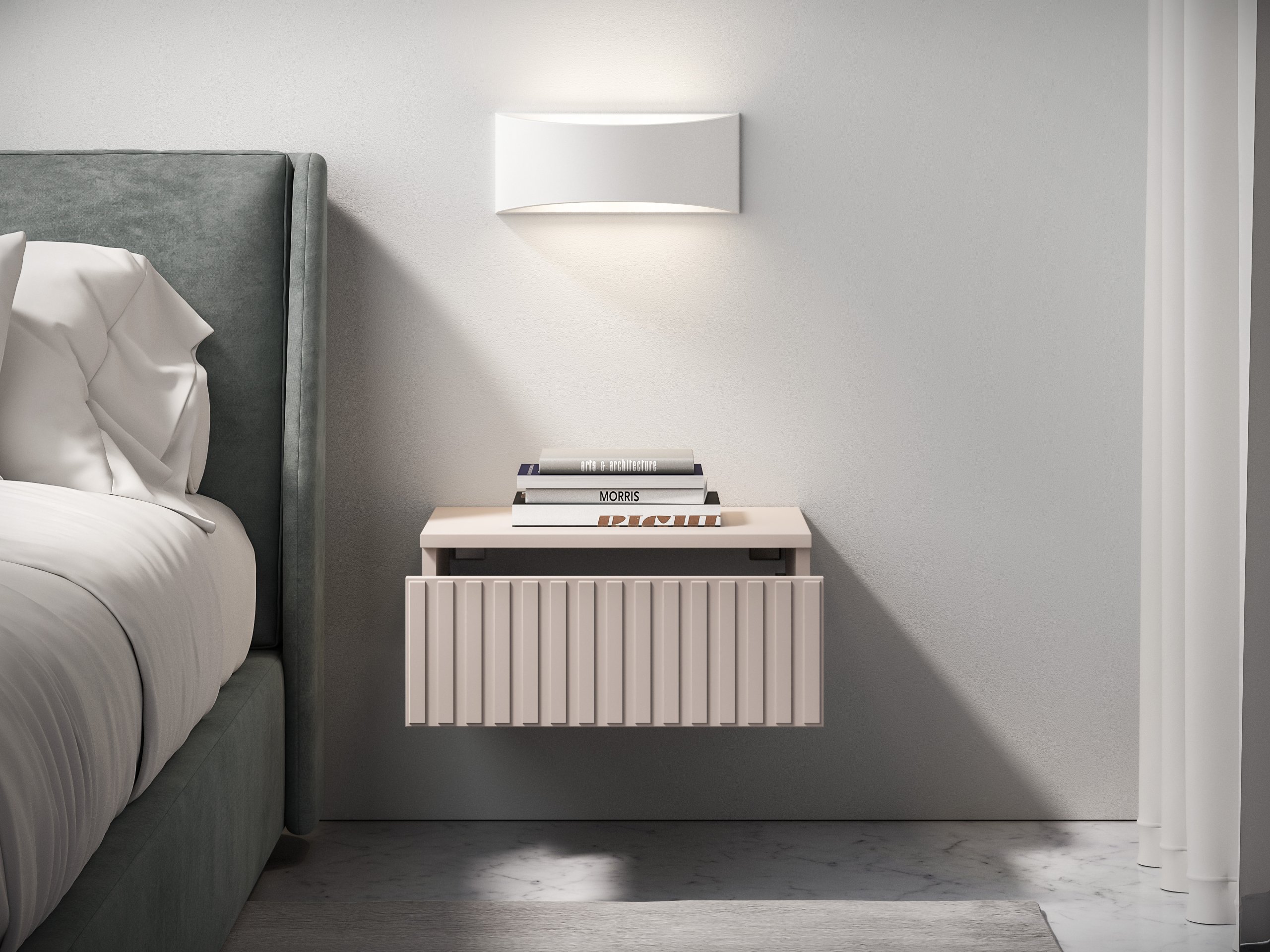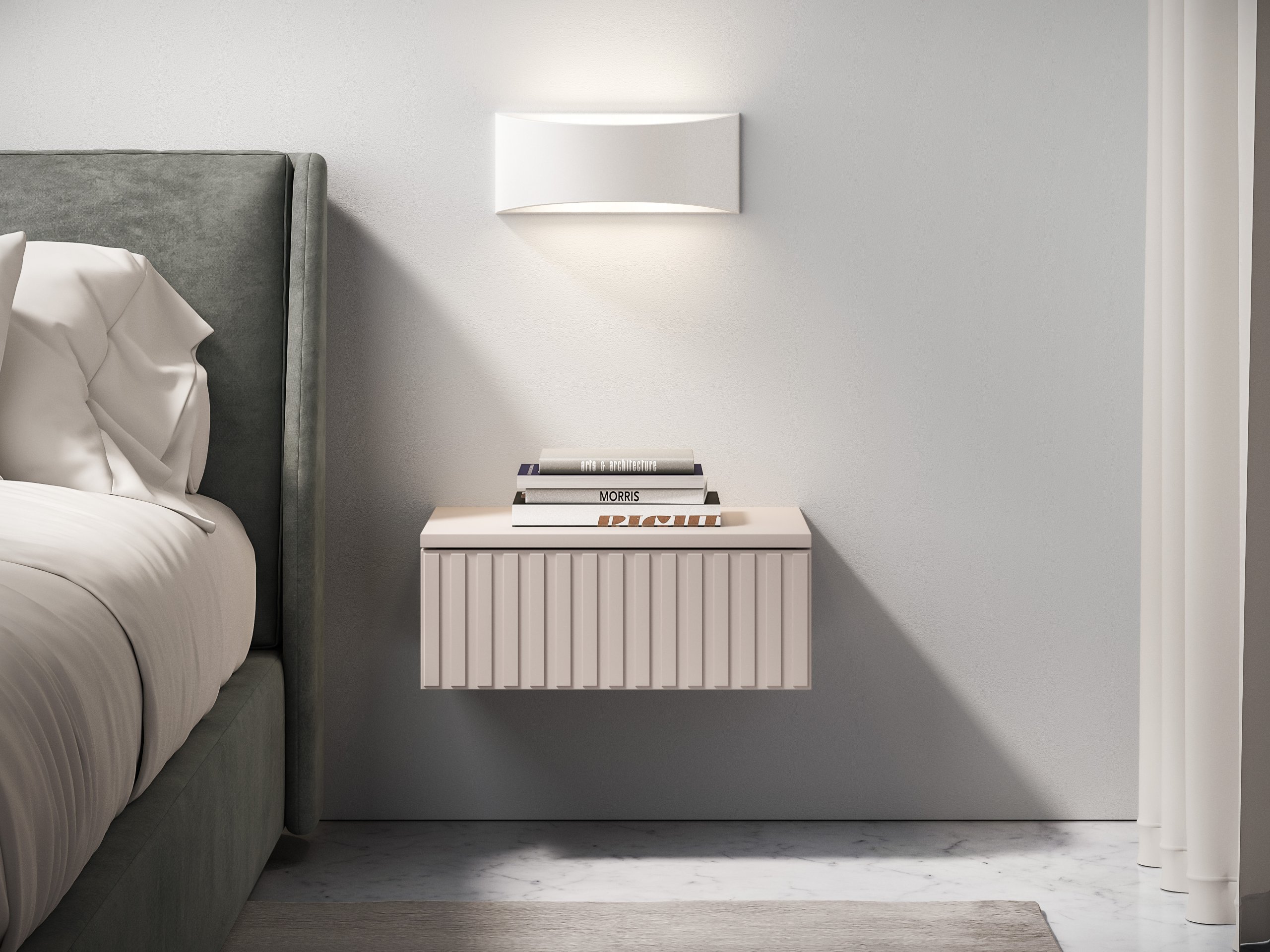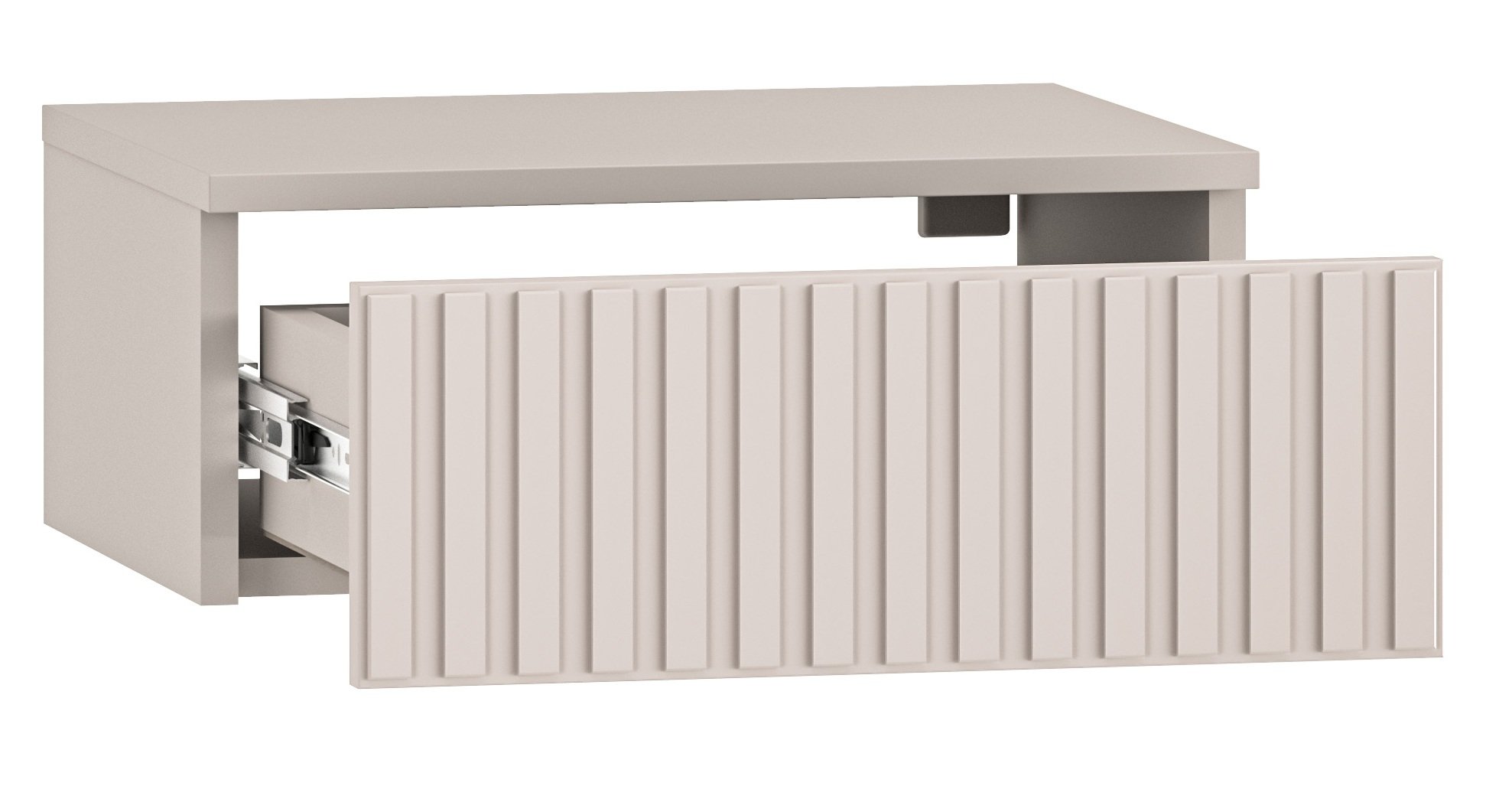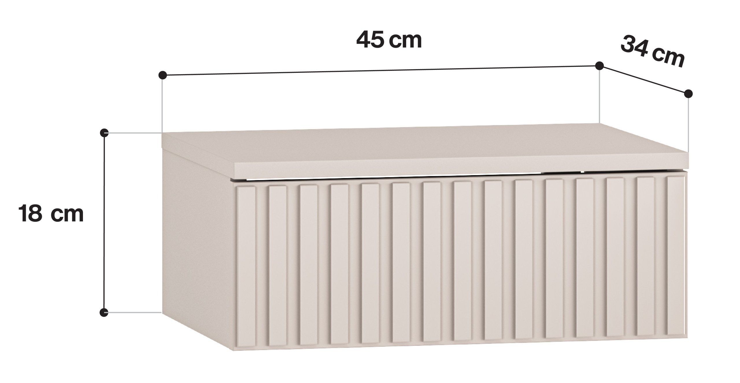 Zidna noćna ormarić Sophie 29 marke ML Meble moderna je rješenja za sve koji žele iskoristiti prostor uz krevet bez podnih nogica ili klasičnog postavljanja. Svojim elegantnim dizajnom i profinjenom bojom kašmira savršeno se uklapa u suvremene spavaće sobe te minimalističke interijere. Zahvaljujući montaži na zid omogućuje lakše održavanje poda i vizualno djeluje prozračno, što dodatno naglašava osjećaj urednosti i prostranosti.