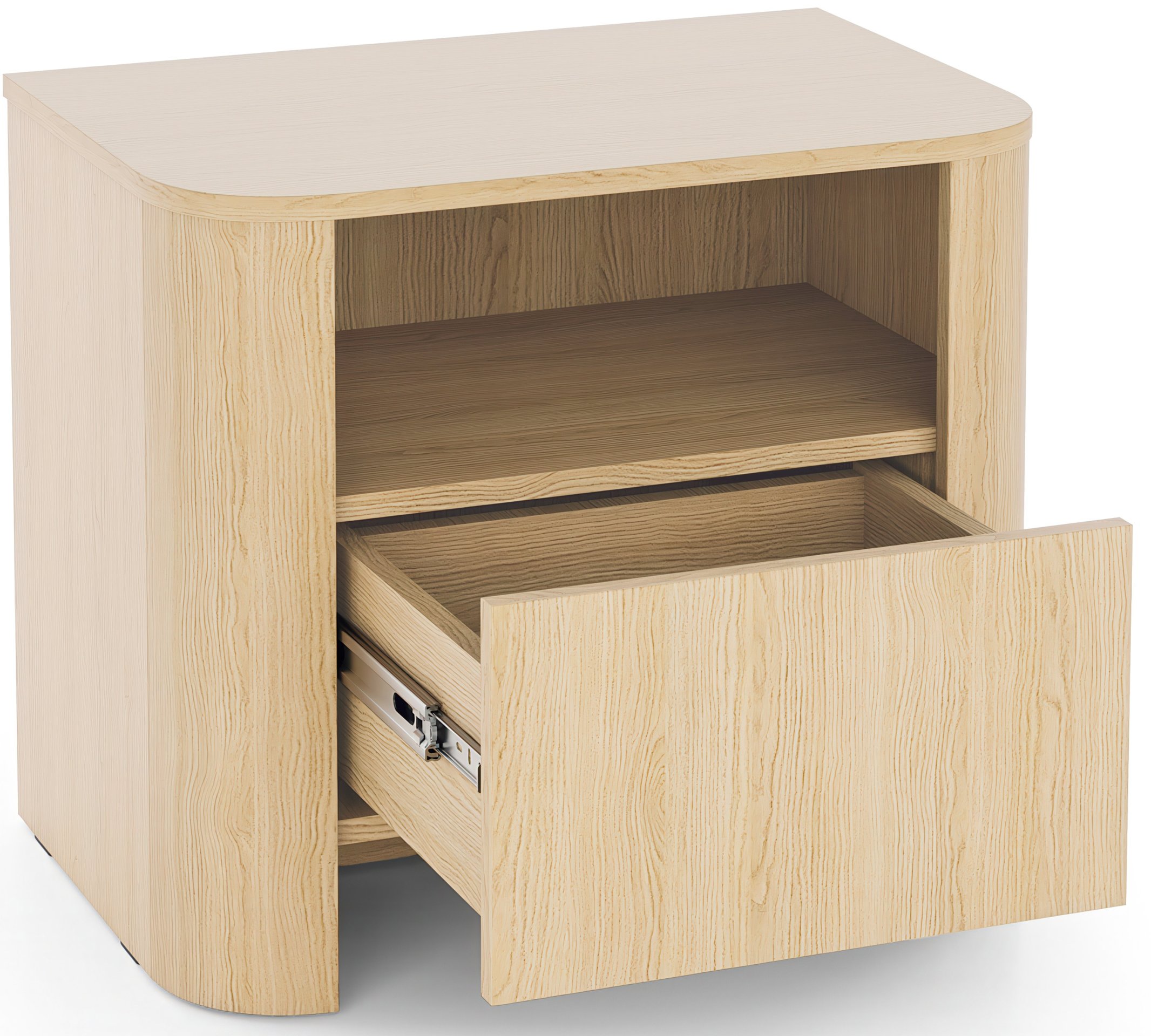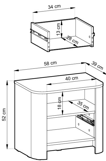 Jedna od ključnih prednosti noćnog ormarića S58 je njegova funkcionalnost. S dva prostrana ladica omogućuje organizirano odlaganje knjiga, naočala, elektronike ili drugih osobnih predmeta koje želite imati pri ruci. Ploča na vrhu ormarića idealna je za postavljanje svjetiljke, budilice ili vaših omiljenih dekorativnih predmeta.