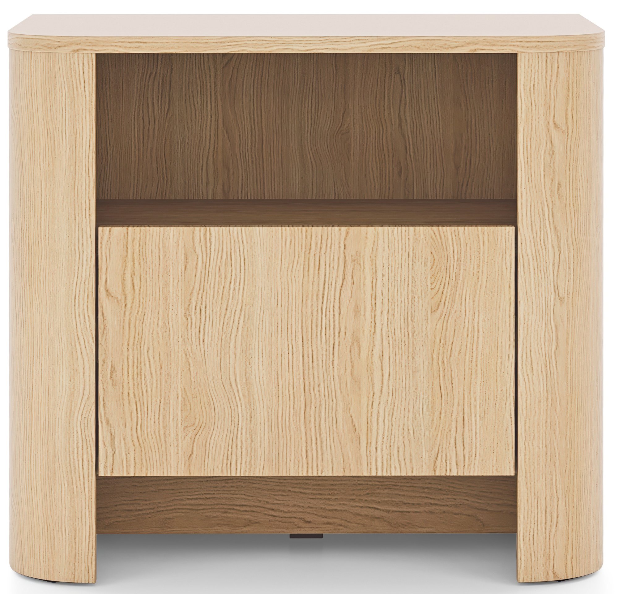 Noćni ormarić S58 izrađen je od visokokvalitetnog iverala, koji osigurava trajnost i dug vijek uporabe. Zaobljeni rubovi i glatka površina u boji hrast vicenza dodaju dašak luksuza vašoj spavaćoj sobi. Njegova neutralna boja lako se uklapa s različitim dekorativnim stilovima, od modernih do klasičnih, što znači da će se savršeno uklopiti u svaki ambijent vašeg doma.