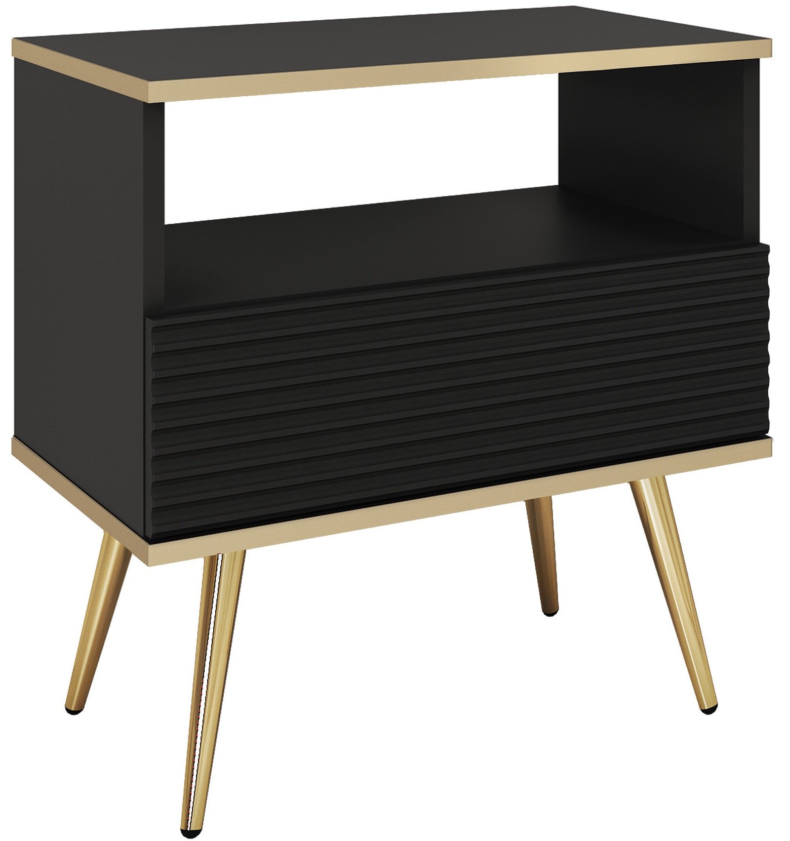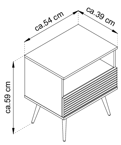 Noćni ormarić Oro osmišljen je za sve koji cijene estetiku i funkcionalnost. S dimenzijama 54x39x59 cm savršeno se uklapa u vaš prostor, a da ga ne optereti. Njegova neutralna crna boja omogućuje lako kombiniranje s različitim stilovima namještaja, od minimalističkog do klasičnog.