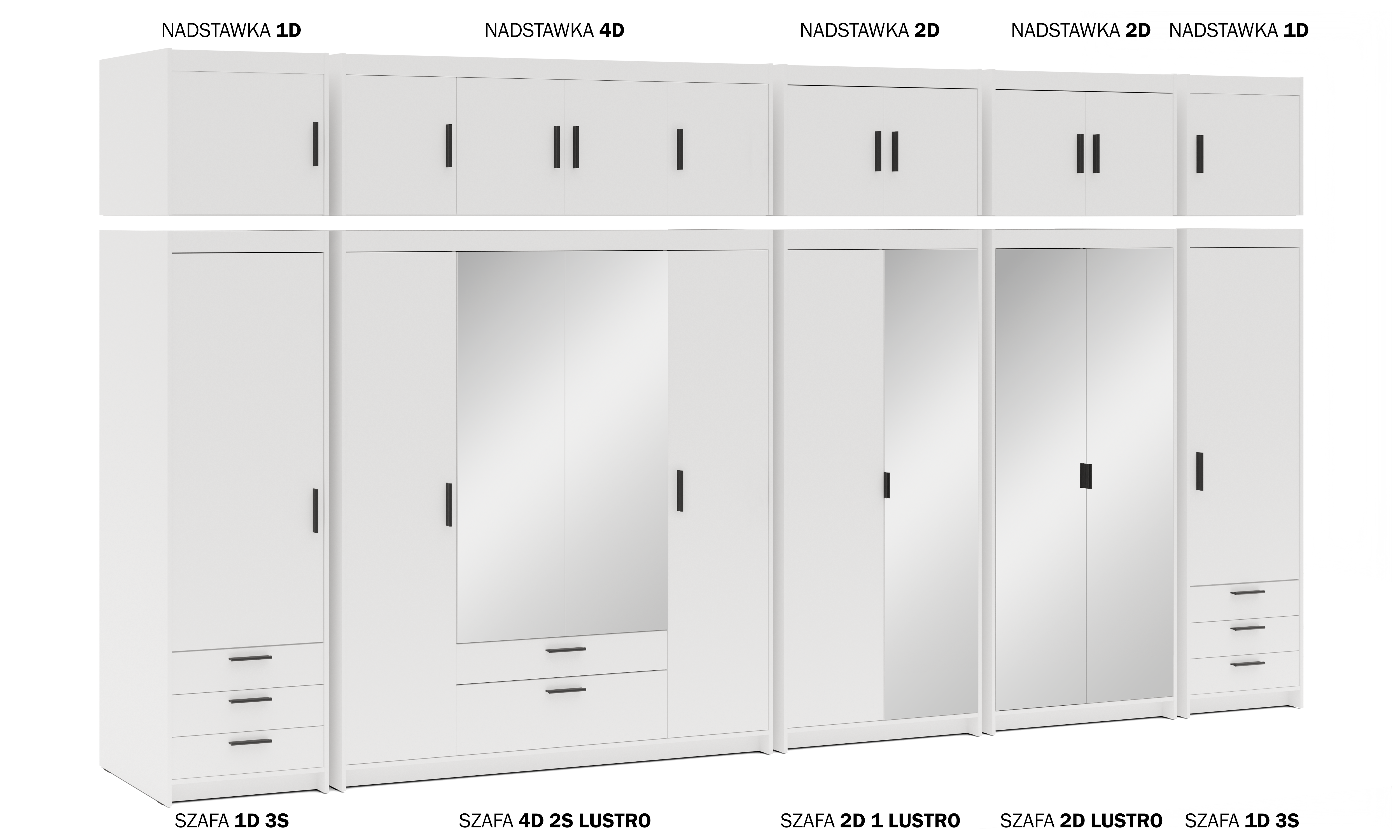 Bijela boja ormara Elena unosi svježinu i svjetlost u svaki prostor. Njezina neutralnost omogućuje jednostavno kombiniranje s različitim stilovima unutarnjeg uređenja, od klasičnog do modernog. Bijela boja dodatno optički povećava prostor, što je idealno za manja stanovanja ili spavaće sobe.