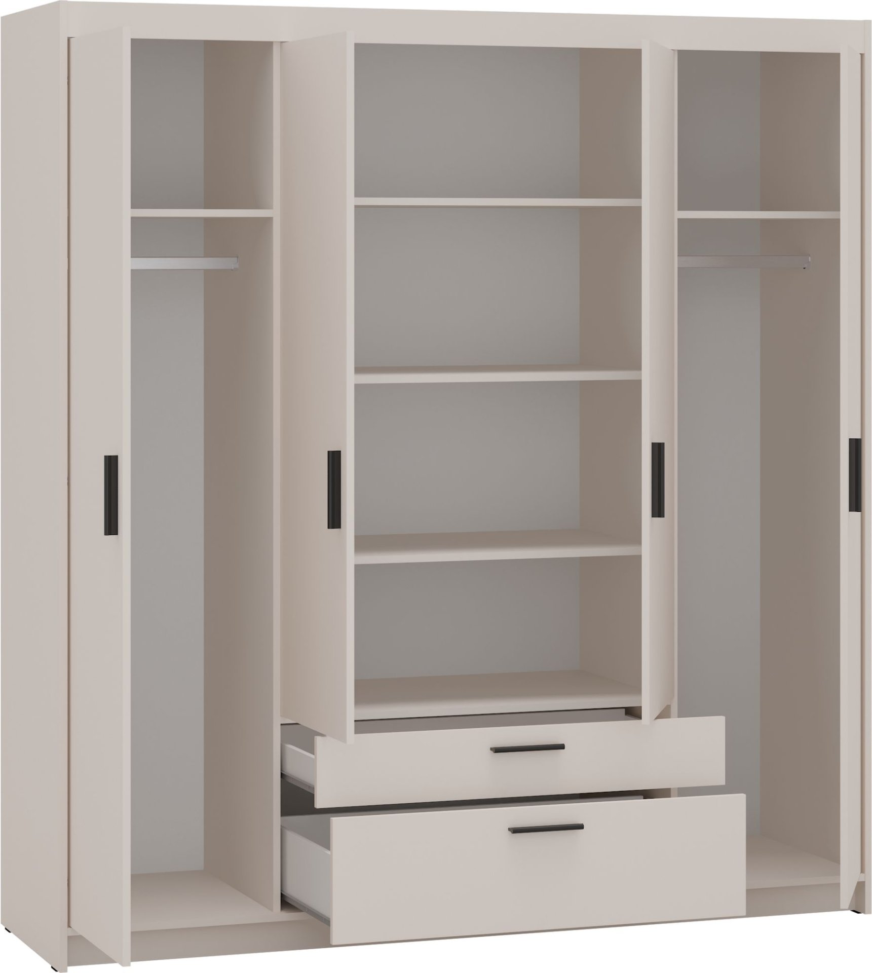 Boja pješčano bež stvara ugodnu, toplu atmosferu koja se lako usklađuje s različitim kombinacijama boja i stilovima namještaja. Takav ton idealan je za one koji žele zadržati svjetlinu i osjećaj prostranosti u prostoru. Površina laminirane ploče ima suptilan sjaj, koji je istovremeno otporan na svakodnevna opterećenja i jednostavan za čišćenje. Zbog svoje neutralnosti, ormar se uklapa i u moderne i u klasične interijere, a može poslužiti i kao vizualna osnova za izraženije dodatke ili tekstil.