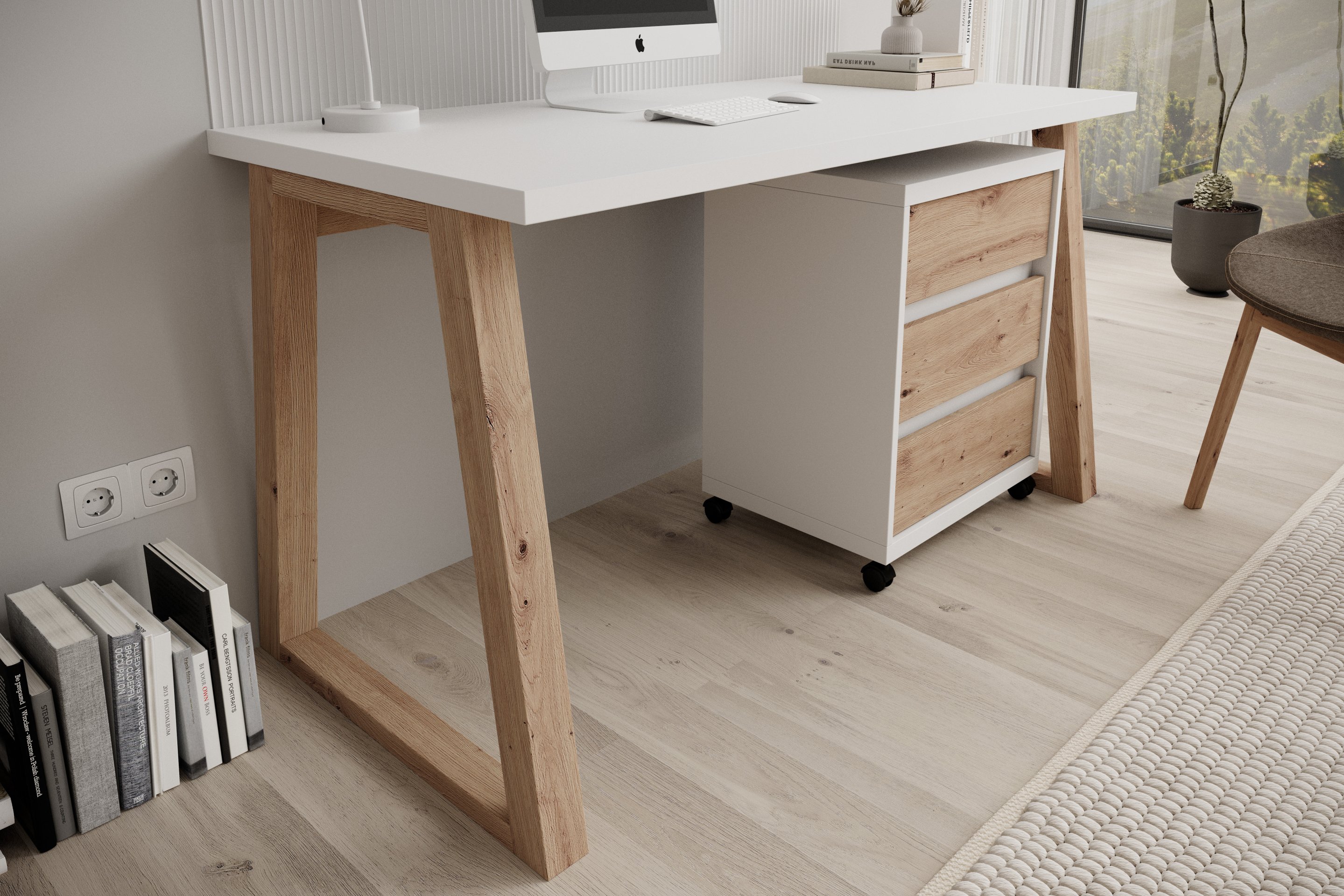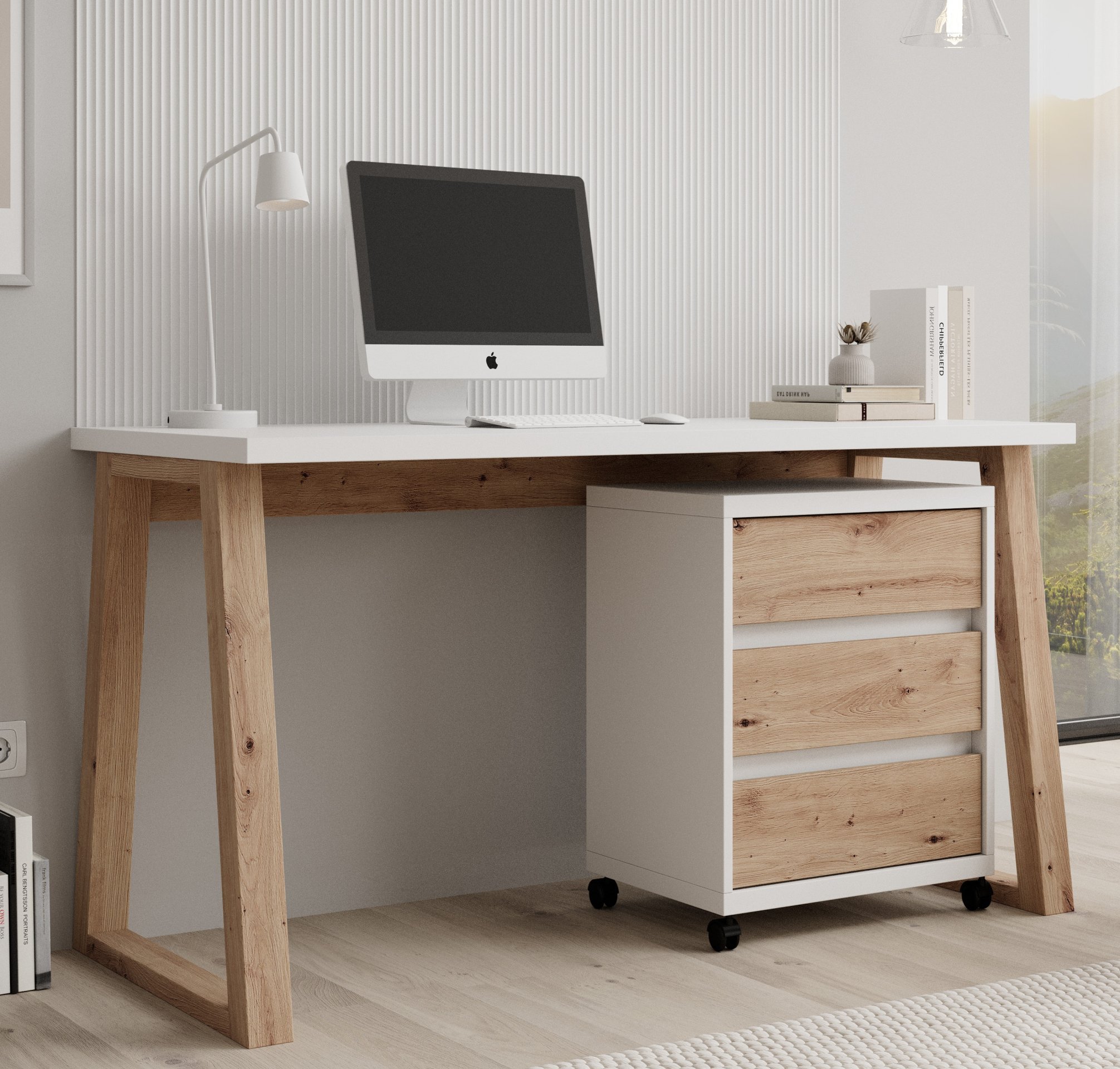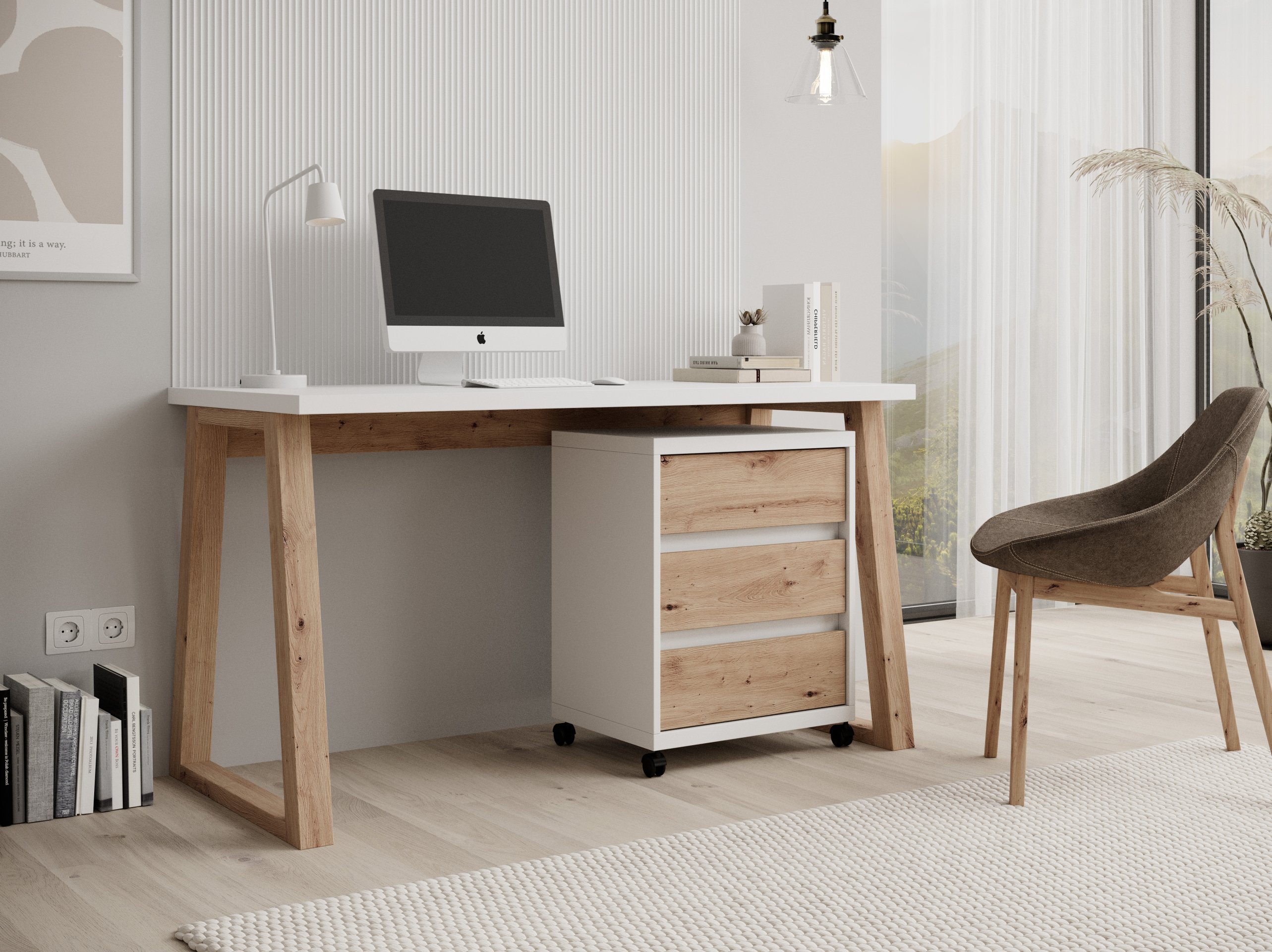 Osim svoje funkcionalnosti, ovaj stol pridonosi stvaranju ugodne radne atmosfere. Toplina dekora hrasta artisan stvara osjećaj prirodnosti i topline, dok bijela boja unosi svježinu i lakoću. Kombinacija ovih tonova potiče koncentraciju, kreativnost i produktivnost — tri ključna elementa svakog uspješnog radnog dana.
