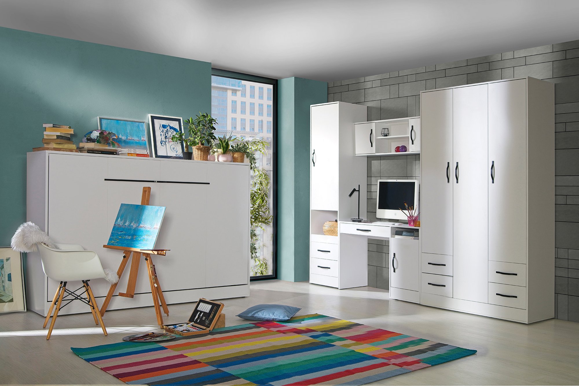 Zbog minimalističkog dizajna Pisani stol Perfect 04 lako se uklapa u različite stilove unutarnjeg uređenja – od skandinavskog i modernističkog do klasično uređenih prostora. Bijela boja omogućuje jednostavno kombiniranje s drugim komadima namještaja, dok kontrastne ručke u bijeloj i crnoj boji dodaju suptilan vizualni naglasak. Takva kombinacija boja i oblika stvara uravnotežen izgled koji ne dominira prostorom, već ga nadopunjuje.
