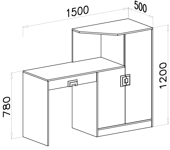Zbog svojih dimenzija komplet je prikladan za manje prostore, gdje je važno iskoristiti svaki centimetar, ali i za veće sobe, gdje može služiti kao središnji dio radnog kutka. Njegova visina omogućuje udobno sjedenje uz većinu standardnih uredskih stolica, a širina dovoljno prostora za rad na računalu ili pisanje rukom.