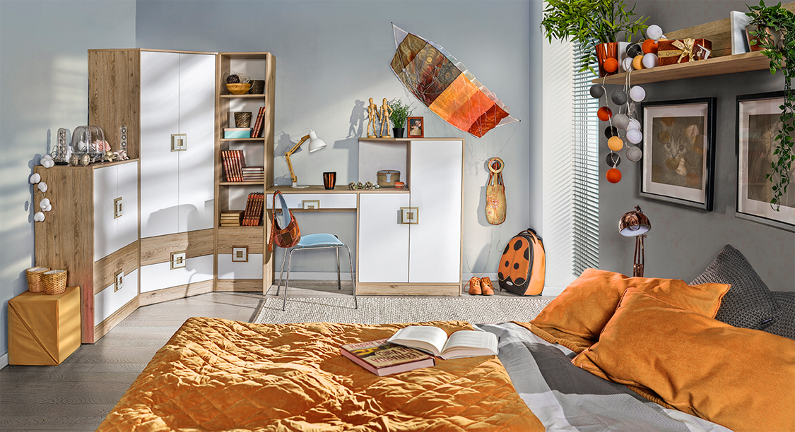 Hrastov dekor dodaje prostoru toplinu i osjećaj doma, dok bijela boja optički povećava svjetlost prostora. Ova kombinacija je univerzalna i bezvremenska, pa se izvrsno slaže s različitim paletama boja i materijalima – od prirodnog drva do metalnih ili staklenih dodataka. Radni stol + komoda Nico 11 stoga je izvrstan izbor i za sobe za mlade i za suvremene kućne urede, gdje se spajaju estetika i funkcionalnost.