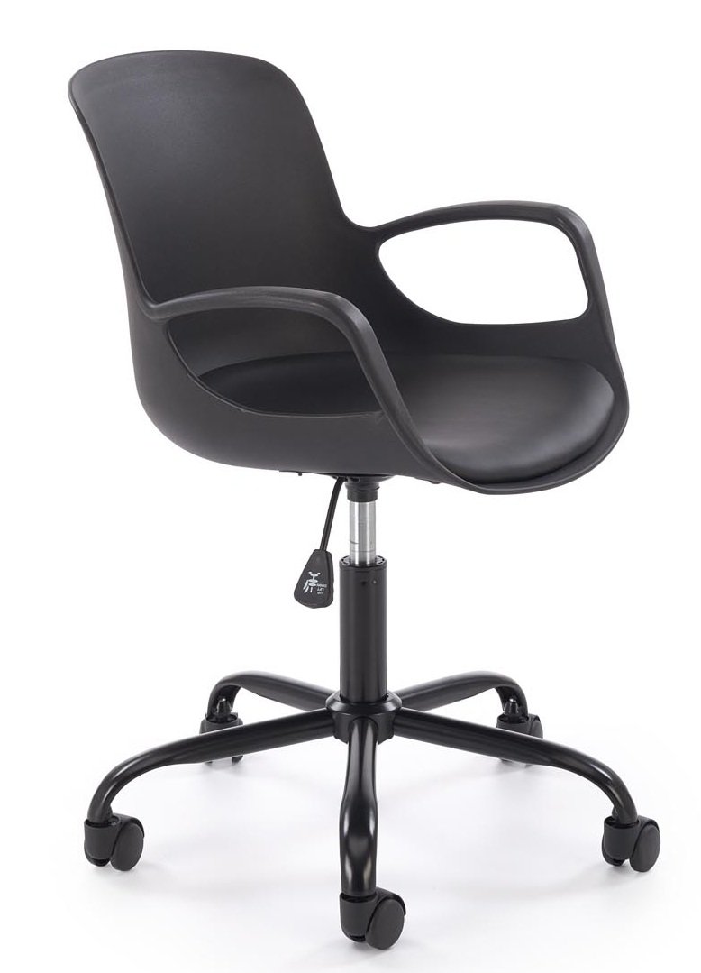 Uredski stol Frost – Halmar je moderan i funkcionalan komad namještaja, dizajniran za udoban rad u uredu ili kućnom radnom prostoru. Kombinacijom kvalitetnih materijala, kao što su eko koža i polipropilen, osigurava trajnost, jednostavno održavanje te vizualnu eleganciju koja se lijepo uklapa u različite tipove interijera. Stolac u crnoj boji spaja minimalistički izgled s uporabnošću, što ga čini prikladnim izborom za one koji cijene uredno, estetsko i istovremeno ergonomsko radno okruženje.