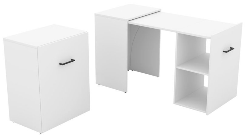 Model ovog radnog stola privlači pažnju pametnom opcijom transformacije kako bi se stvorio funkcionalan radni prostor u maloj sobi. U sklopljenom stanju ovaj stol ima funkciju ormarića koji se povlačenjem ručke pretvara u veliku radnu površinu. Donji dio ima praktičnu policu koja se može koristiti za različite predmete. Stol je idealan odabir za male sobe u kojima je svaki kvadrat dragocjen.