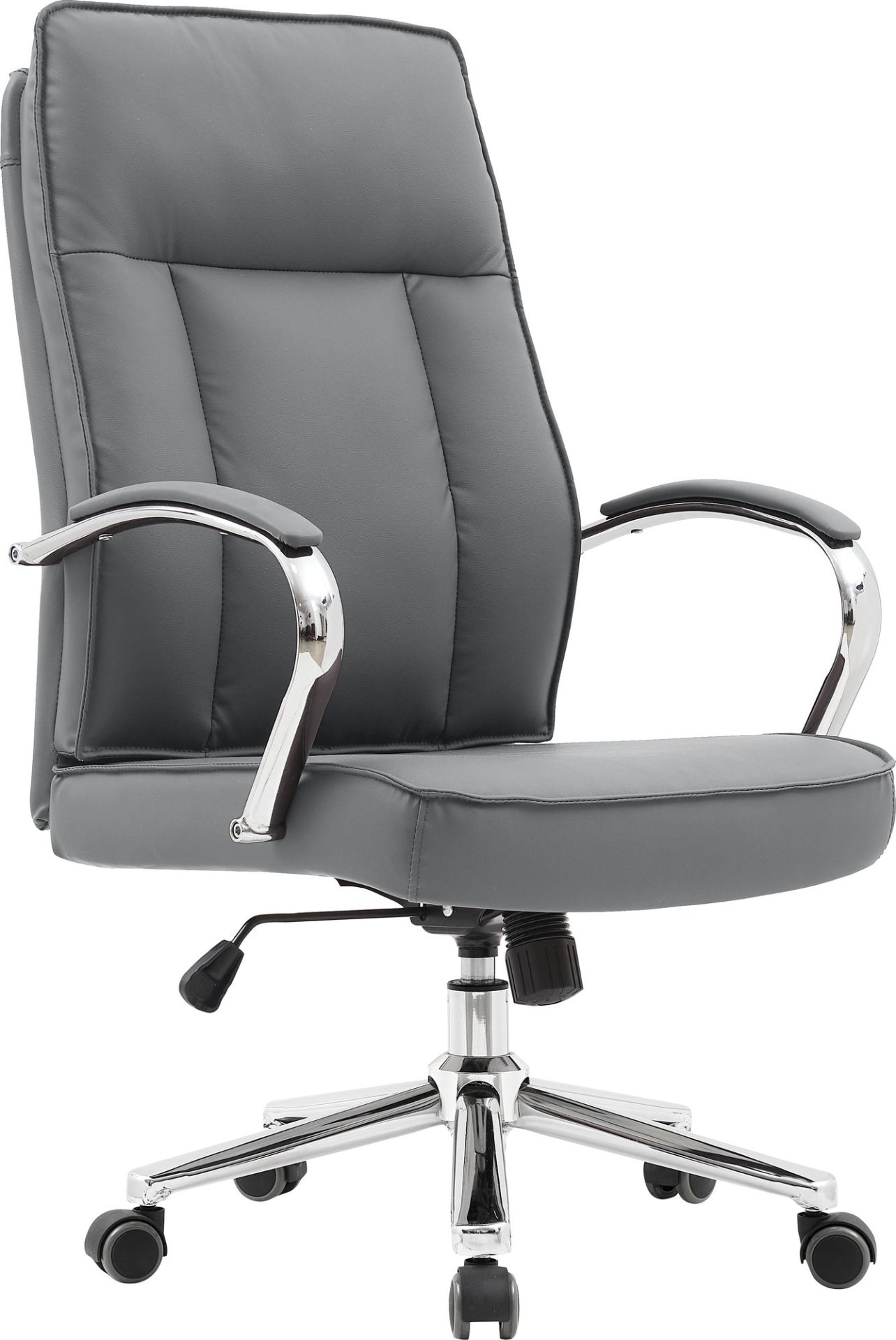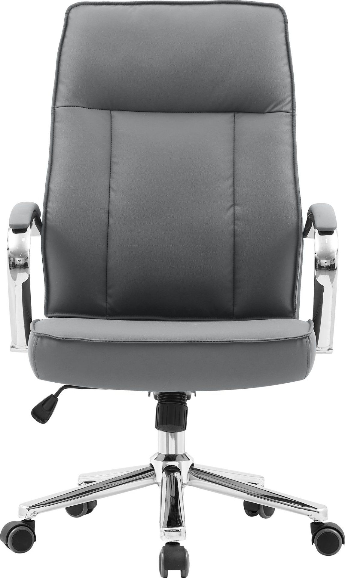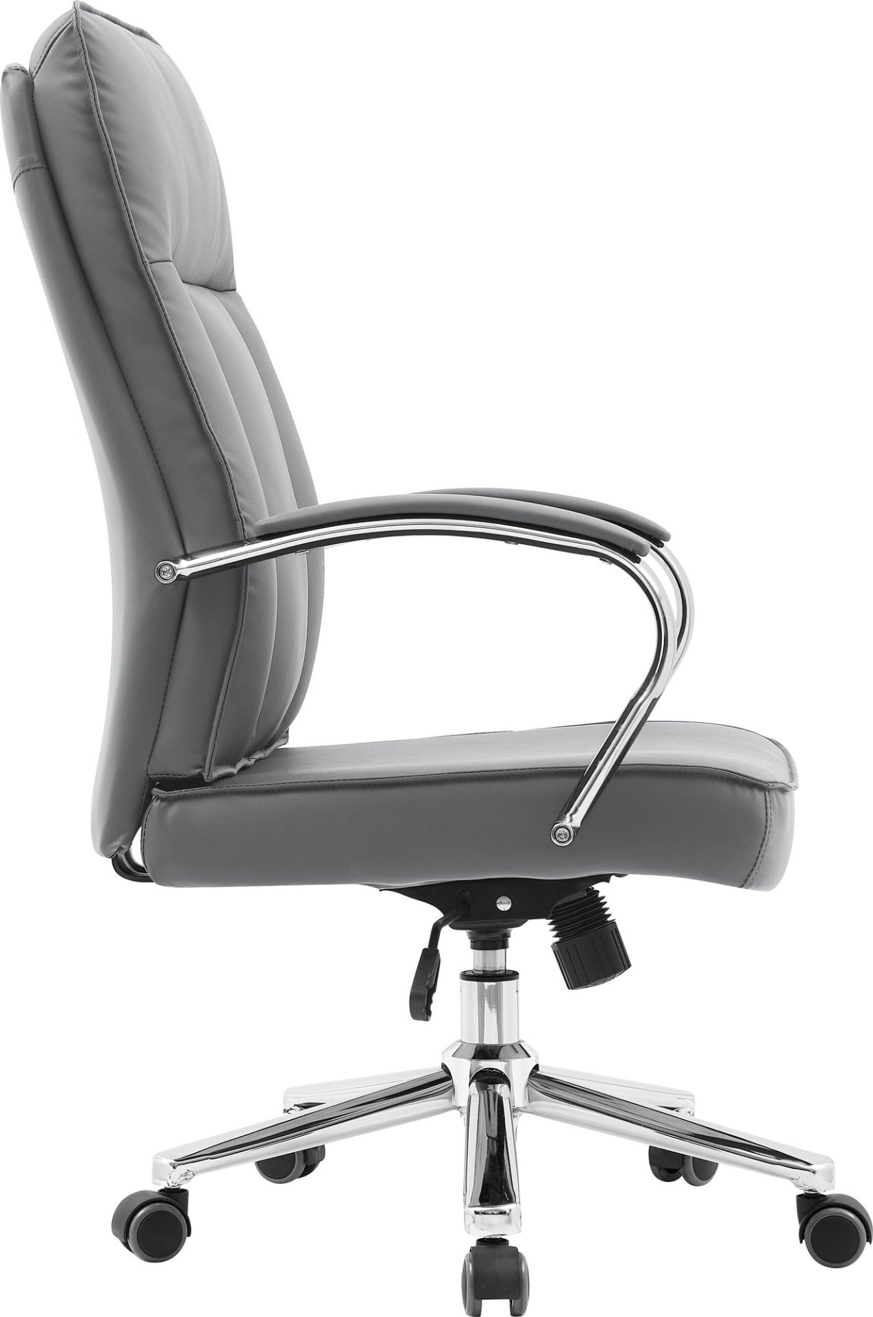 Kombinacija umjetne kože i metalne konstrukcije jamči dugotrajnost i otpornost na svakodnevno korištenje. S maksimalnom nosivošću od 120 kg, stol pruža stabilnost i sigurnost, a istovremeno zadržava elegantan izgled. Čvrsti kotači od najlona omogućuju glatko i tiho pomicanje po raznim površinama, bilo da je riječ o tepihu, parketu ili laminatu, bez oštećenja poda.