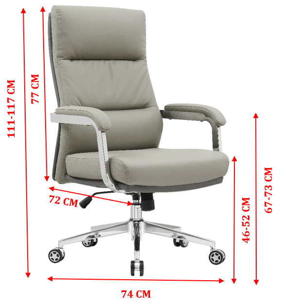 Čvrsta metalna konstrukcija osigurava stabilnost i dugotrajnost. Kromirano postolje dodaje dašak modernog sjaja, dok precizna izrada svjedoči o visokoj razini kvalitete. Svaki detalj pažljivo je oblikovan kako bi pružio maksimalnu udobnost i potporu tijekom dugih radnih sati.