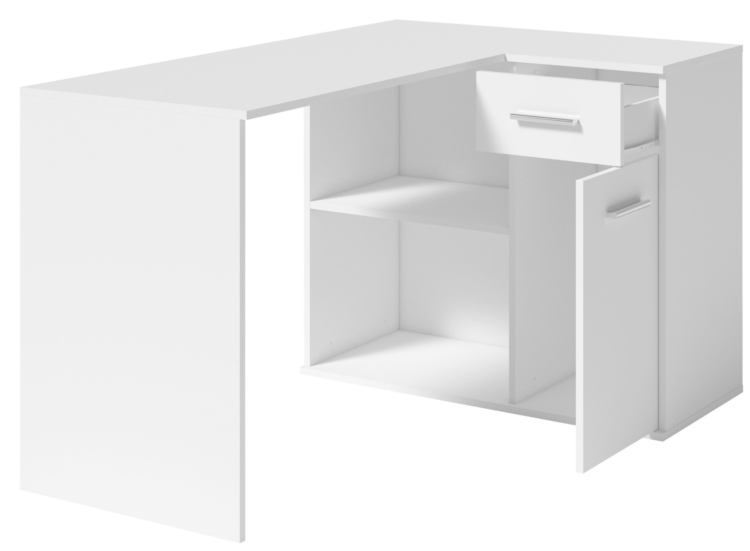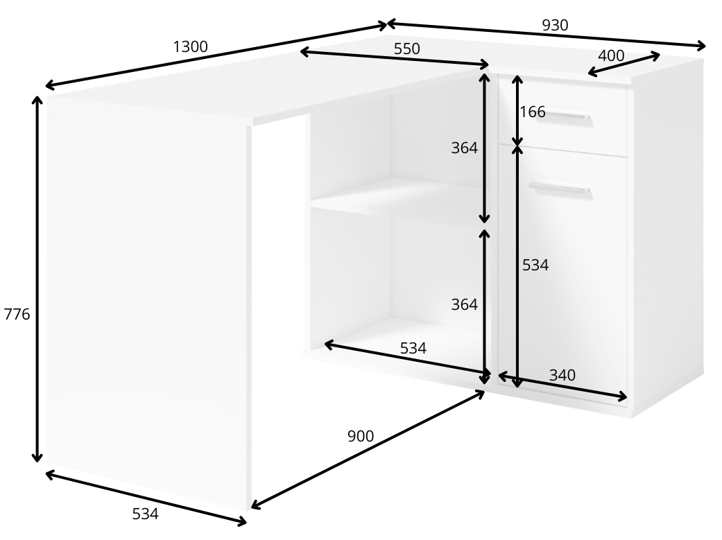 Dimenzije 130x78x93 cm omogućuju optimalno iskorištavanje prostora, bez obzira na to postavljate li ga u kućni ured, sobu za mlade ili radni kutak u dnevnoj sobi. Kutni dizajn omogućuje da stol jednostavno smjestite u kut prostorije, čime dobivate dodatnu površinu za pohranu ili dekoraciju. Bijela boja daje osjećaj svjetlosti i prostranosti, a istovremeno se odlično uklapa u različite stilove unutarnjeg uređenja – od minimalističkog, skandinavskog do klasičnog i modernog.