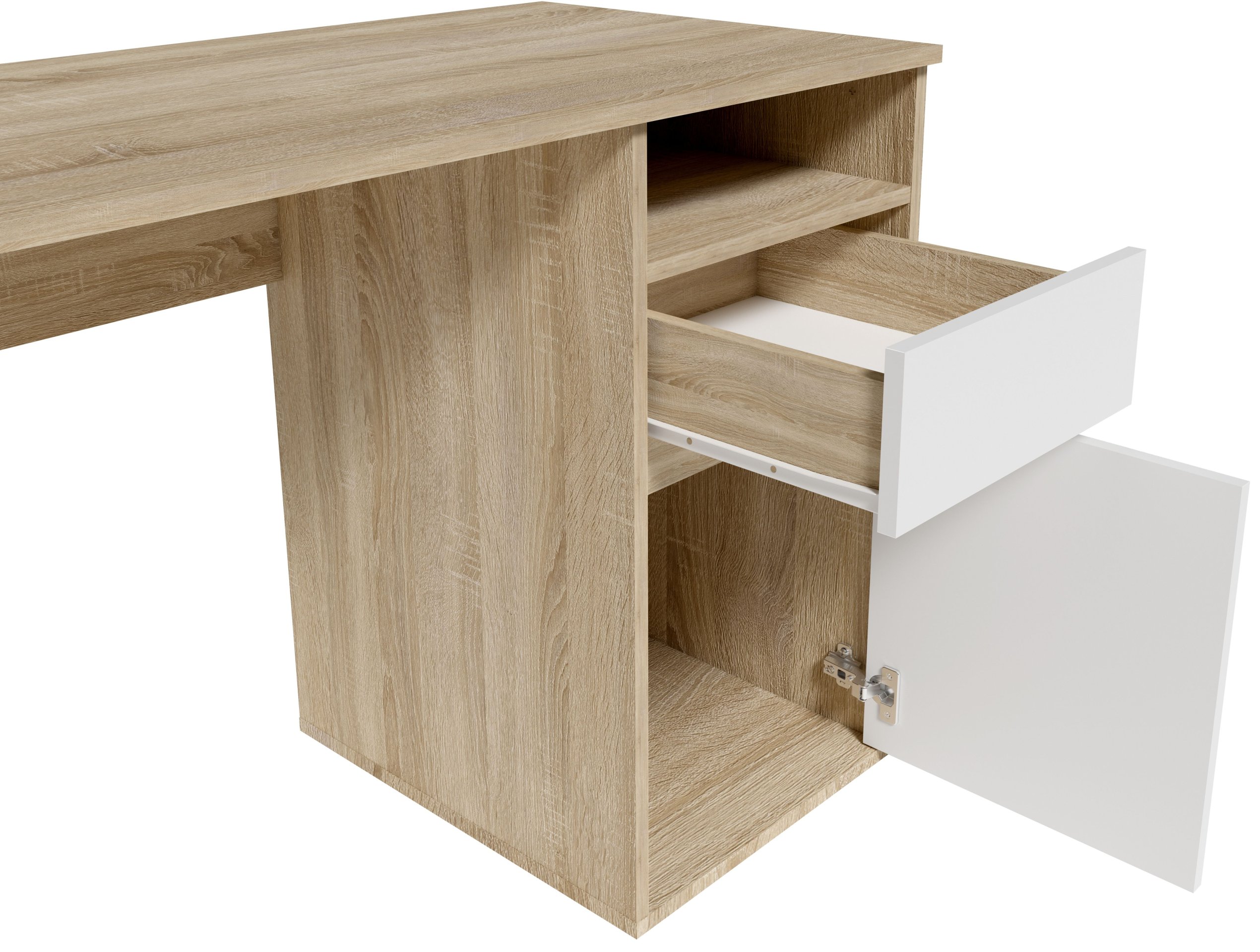 Ako želite prostor koji će biti organiziran, estetski i inspirativan, ovaj stol je pravi izbor. Njegova prirodna boja hrasta stvara topao i ugodan ambijent, dok bijela boja dodaje osjećaj čistoće i svježine. Stol se lijepo uklapa s drvenim, bijelim ili čak metalnim elementima, pa ga možete bez poteškoća uklopiti u postojeći namještaj.