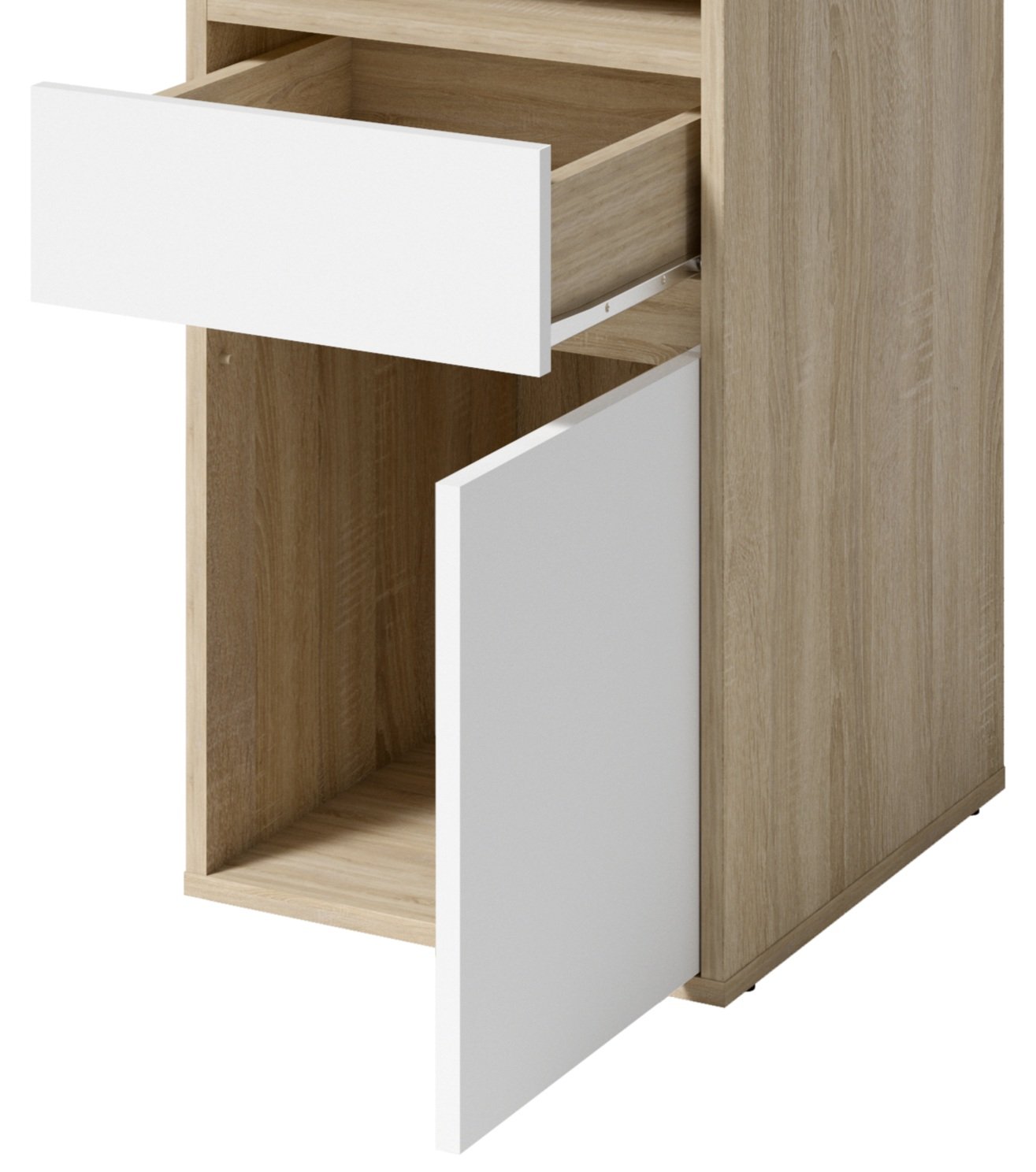 Savršena kombinacija funkcionalnosti, estetike i udobnosti – ovaj elegantni pisaći stol u boji hrasta sonoma i bijele boje unijet će u vaš dom ili ured svježinu, urednost te ugodan radni ambijent. Zahvaljujući svom jednostavnom, ali suvremenom dizajnu, odlično se prilagođava i modernim i klasičnim interijerima, a ujedno nudi dovoljno prostora za rad, učenje ili stvaranje.