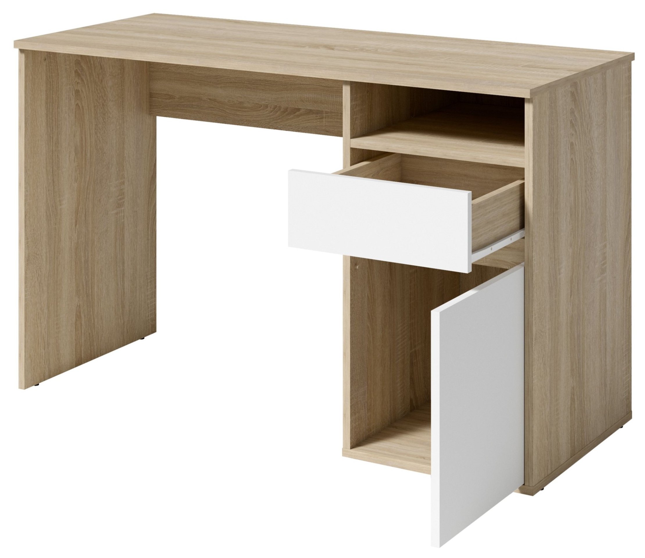 Dimenzije 120x50x74,1 cm omogućuju optimalno iskorištavanje prostora – stol nije prevelik da bi zauzeo previše mjesta, a istodobno dovoljno prostran da na njemu imate sve potrebno za učinkovit rad. Kombinacija hrasta sonoma i bijele boje daje prostoru svjetlost, toplinu i vizualnu svježinu koja potiče produktivnost i dobro raspoloženje.
