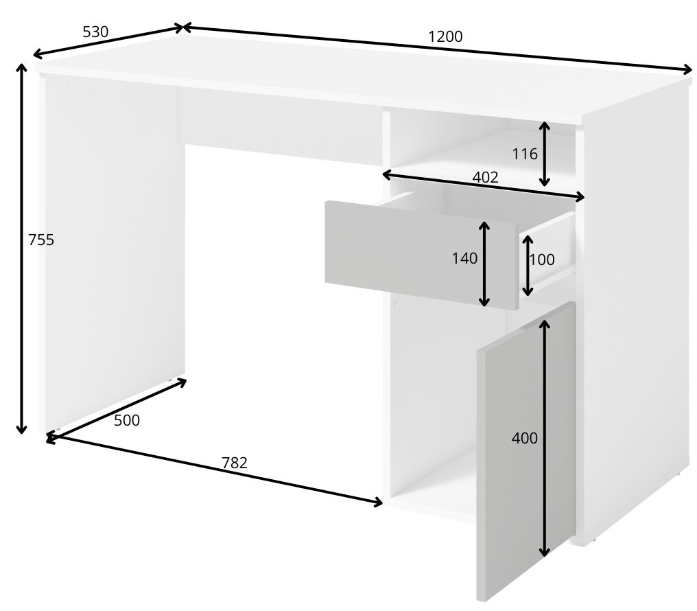 U današnjem digitalnom svijetu funkcionalan i estetski dovršen radni stol nezamjenjiv je dio svakog doma. Predstavljamo vam radni stol Billa 60 u elegantnoj kombinaciji grafitne i bijele boje, koji će savršeno upotpuniti vaš unutarnji prostor i stvoriti okruženje koje potiče produktivnost.