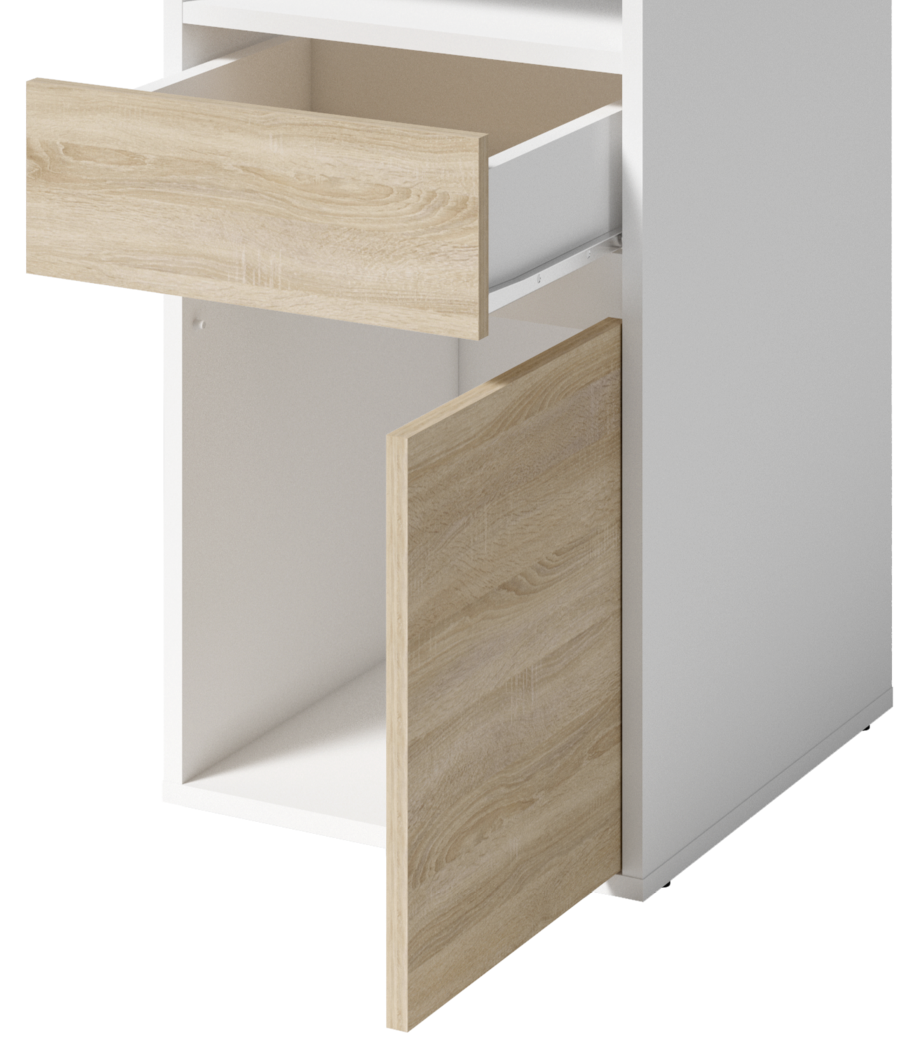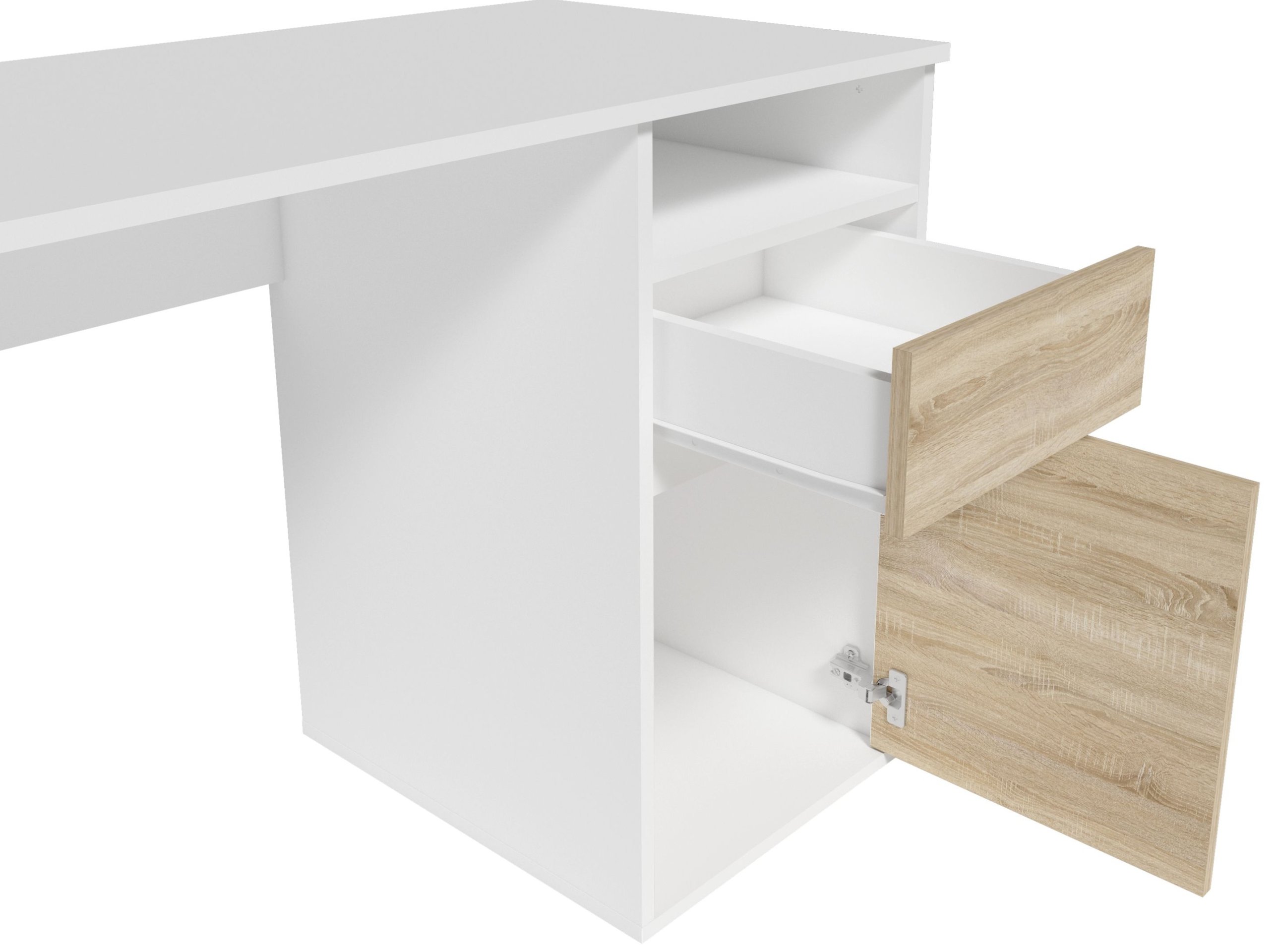 Radni stol Billa 60 izrađen je od visokokvalitetne laminirane ploče koja osigurava izdržljivost i dug vijek trajanja. Laminirana površina otporna je na ogrebotine i mrlje, što olakšava održavanje i osigurava da vaš stol uvijek izgleda kao nov. Kombinacija bijele i hrasta sonoma donosi svježinu i toplinu koja će se odlično uklopiti u svaki prostor, bez obzira na stil ili dekor.