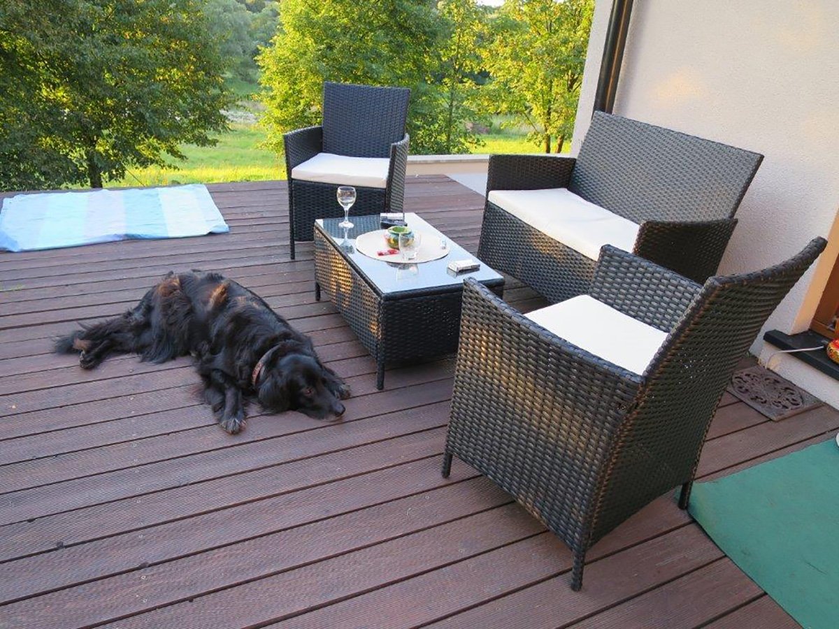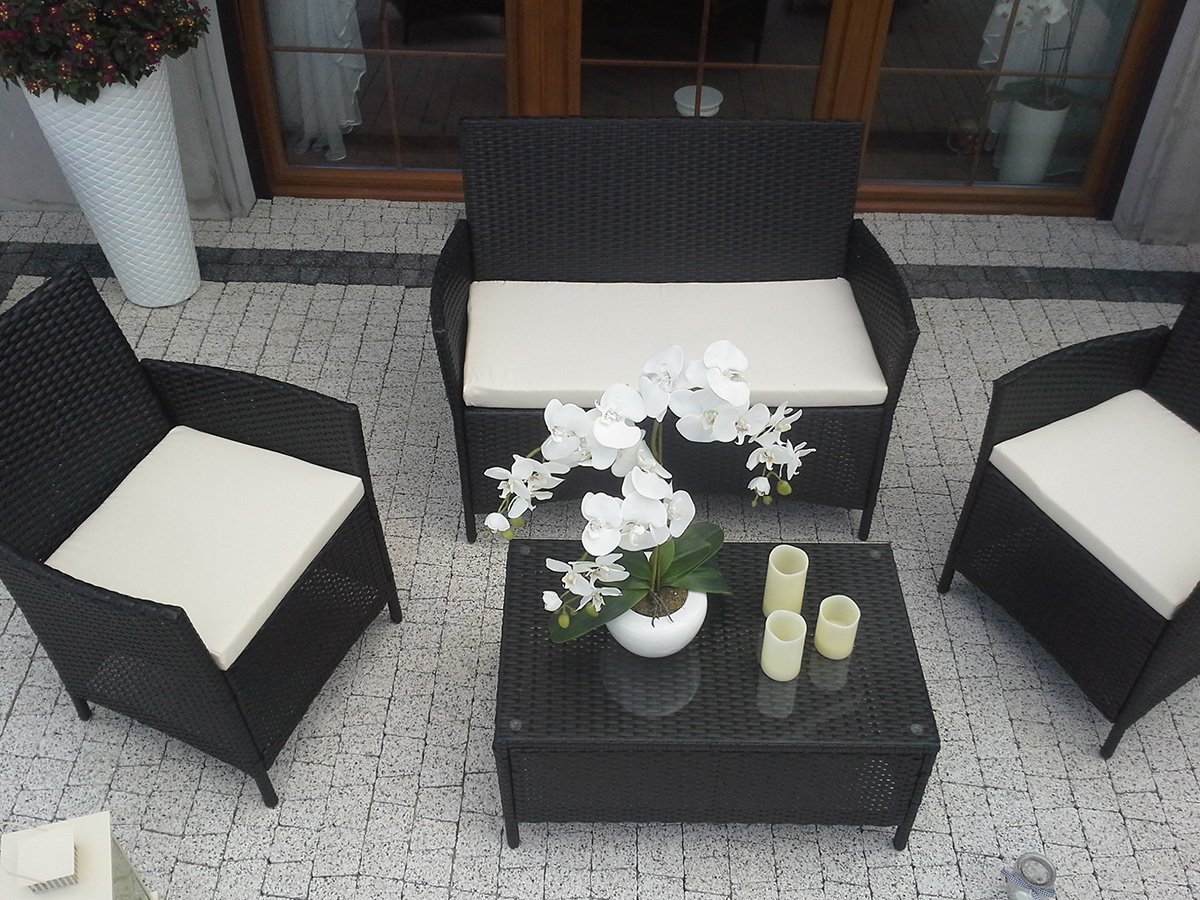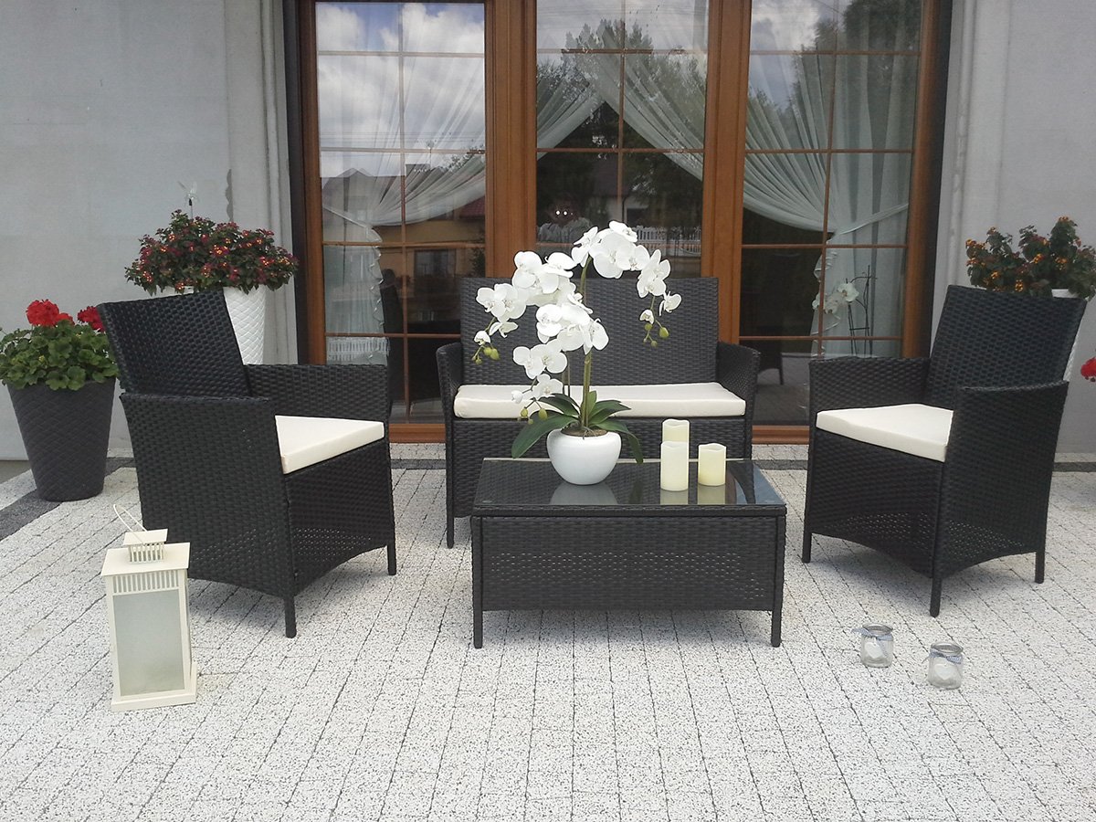 Jednostavne linije i elegantna crna boja daju ovom vrtnom setu profinjen izgled koji se lako uklapa u različite stilove uređenja eksterijera – od klasičnih do modernih prostora. Pletenje od tehno-ratana širine 7-8 mm s nježno rebrastom strukturom doprinosi atraktivnom vizualnom dojmu i osigurava jednostavno održavanje. Materijal je otporan na UV zrake, vlagu i temperaturne promjene, što znači da će zadržati svoj izvorni izgled i nakon dugotrajne upotrebe. Čelična konstrukcija pruža stabilnost i sigurnost, a istovremeno omogućuje jednostavno sastavljanje seta bez potrebe za dodatnim alatima.