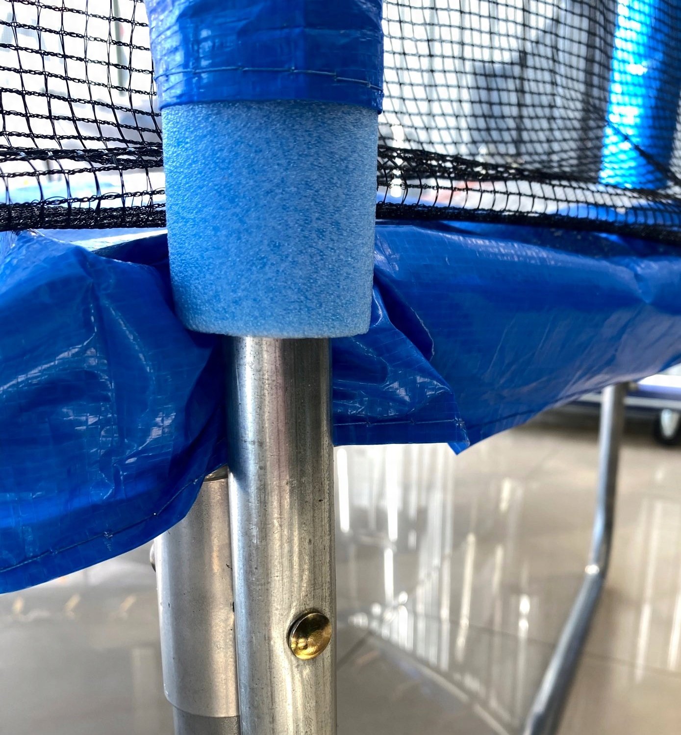 Trampolin je odlično rješenje za igru i veselje djece, ali i sportska sprava za odrasle. Podloga trampolina sadrži 42 pocinčane i kaljene opruge koje su obložene zaštitnom pjenom. Trampolin ima 4 noge za veću stabilnost (pocinčane, dvostruke široke noge), također sadrži ljestve i zaštitnu mrežu otpornu na vremenske uvjete, deformacije i habanje.