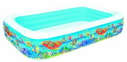 Bazen dimenzija 305 cm x 183 cm x 56 cm je izrađen od čvrstog vinila s grafikom šarenih ribica. Unutarnji I-Beam okvir i vrlo široke stijenke osiguravaju stabilnost cijele strukture. Bazen će sadržavati do 1.161 litru vode. Uz kupnju dobivate i set za popravak