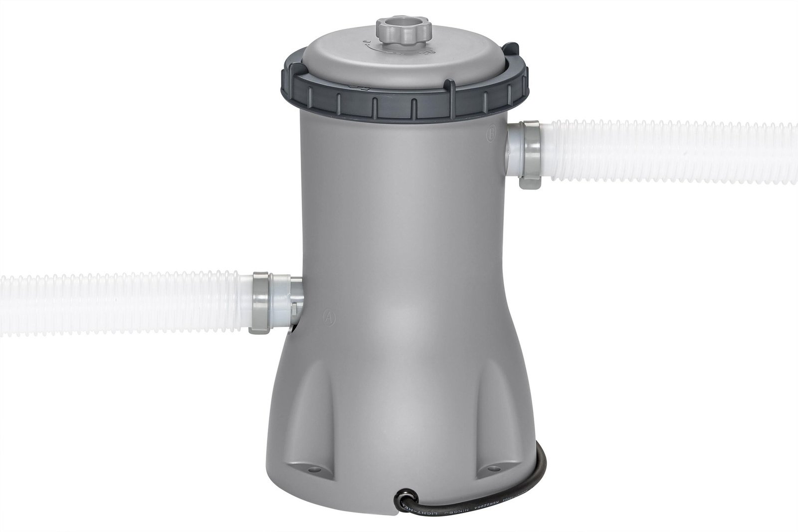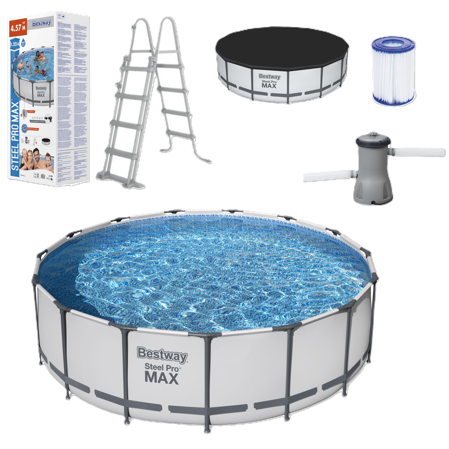 Set uključuje: bazen, pumpu, ljestve, podlogu, poklopac, cijevi pumpe, ventil, set za popravak, okvir.