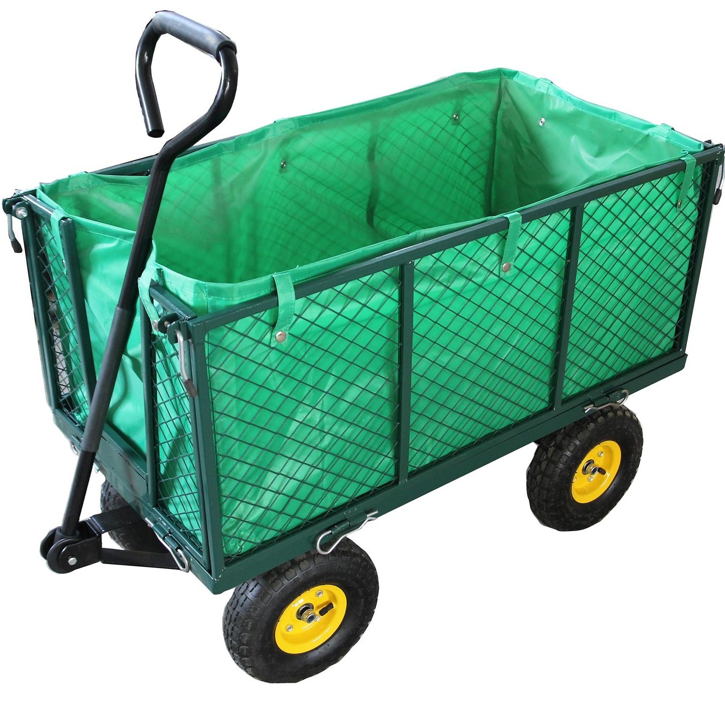 Uključen i poklopac za prijevoz rasutih materijala. Prikladno za upotrebu kako u vrtu tako i na različitim radnim mjestima - na primjer, u pošti, skladištu, radionici i kod kuće. Kotači s gaznom površinom osiguravaju odlično prianjanje na podlozi.