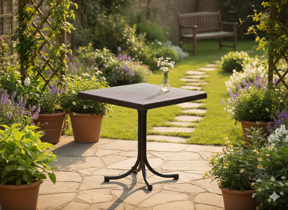 Smeđa boja stola naglašava toplinu i prirodni karakter ratana. Ova nijansa izvrsno se slaže s različitim vrstama vrtnog namještaja, drvenim ili metalnim elementima te dodacima od tekstila. Zbog neutralnog tona lako ga je kombinirati s drugim bojama i uzorcima, pa će stol lijepo upotpuniti svaki vanjski ambijent – od rustikalnog do modernog.