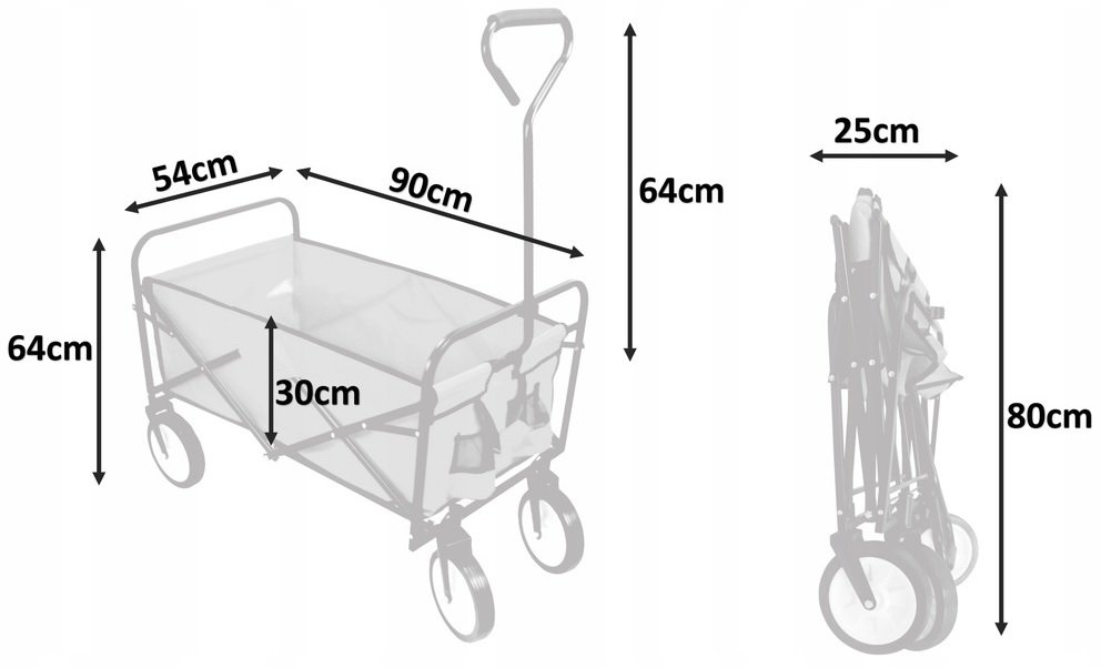 Proizvod je izrađen od visokokvalitetnih materijala i može podnijeti opterećenje do 70 kg. Ima snažnu metalnu strukturu i zaštitu od izdržljivog i vodootpornog materijala. Udobna ručka omogućuje jednostavno upravljanje čak i pod opterećenjem. Masivni kotači se vrte za 360⁰, osiguravaju glatku vožnju čak i pri velikim opterećenjima. Kotači podnose i pješčane površine!