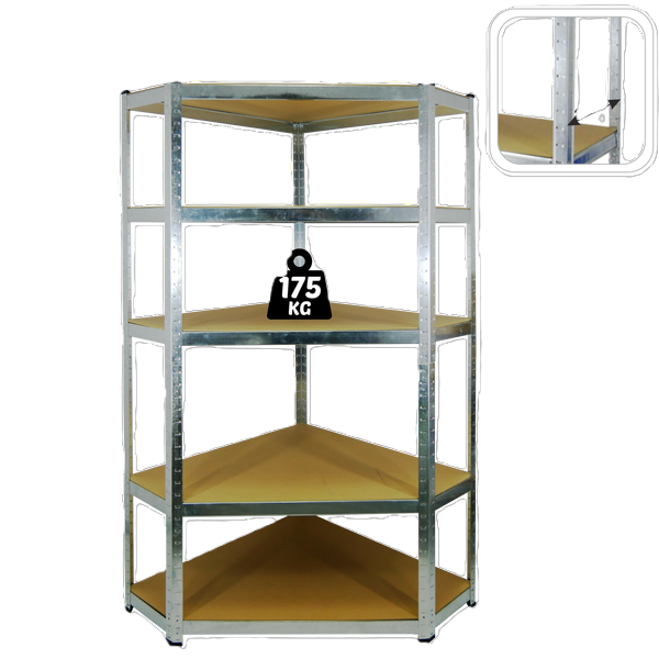 Otkrijte savršeno rješenje za sve vaše stvari - polica sa pet polica. Nije važno jeste li ljubitelj knjiga ili samo trebate više prostora za pohranu! Uz ovaj kutni regal iskoristite kut vaše ostave ili radionice i organizirajte uredan i pregledan prostor.