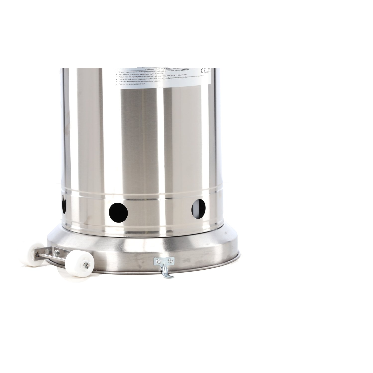 Korisnici će cijeniti i praktičnost – grijač ne zahtijeva električni priključak, pa ga možete postaviti bilo gdje na otvorenom. Propan se dovodi izravno iz boce, što omogućuje potpunu mobilnost i slobodu pri korištenju. Zahvaljujući integriranim kotačima, lako ga možete premještati po vrtu, terasi ili dvorištu.